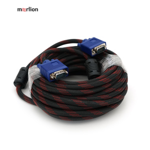 Кабель Merlion VGA 3 + 4, 10m, male to male (тато-тато), OD-8.2mm, 2 ферита, обплетення, круглий Black / Red, коннектор Blue