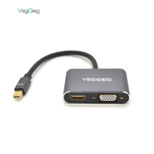 Конвертер VEGGIEG MD2-M MiniDisplay Port (тато) на HDMI (мама) + VGA (мама), 25cm, Silver, Пакет