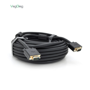 Кабель VEGGIEG VG-15 VGA 3 + 6, 15m, male to male (тато-тато), OD-8.0mm, 2 фериту, круглий Black, коннектор Gold, Box