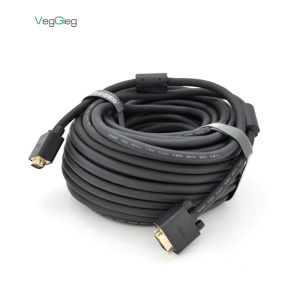 Кабель VEGGIEG VG-20 VGA 3 + 6, 20m, male to male (тато-тато), OD-8.0mm, 2 фериту, круглий Black, коннектор Gold, Box
