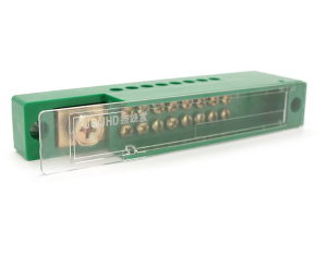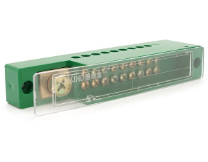 Паралельний розгалужувач-спліттер проводів FJ6 / JHD-1-9, 1-фаза-1вхід М8, 9виходів(латунь)1,5-35х1,5-10мм2, AC600V, 60А,-55°С~125°С,138*36*24мм,GREEN