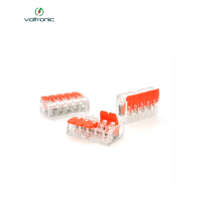 Клема з натискними затискачами 5-провідна аналог WAGO K221-415 для розподільчих коробок, 5-pin,прозоро-оранжева,упаковка 15 шт,ціна за упаковку