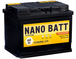 Аккумулятор автомобильный NANO BATT Econom 60A +прав (0) 510А