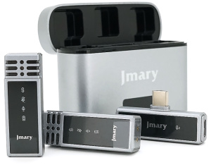 Петличний бездротовий мікрофон Jmary MW-15 (2шт)+ кейс, роз'єм Type-C, вбудований акумулятор 70 mAh, Silver, Box