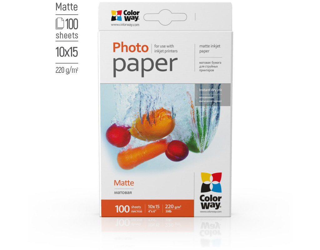 Фотобумага ColorWay 10x15, 220г, matte, 100л (PM2201004R_OEM)
