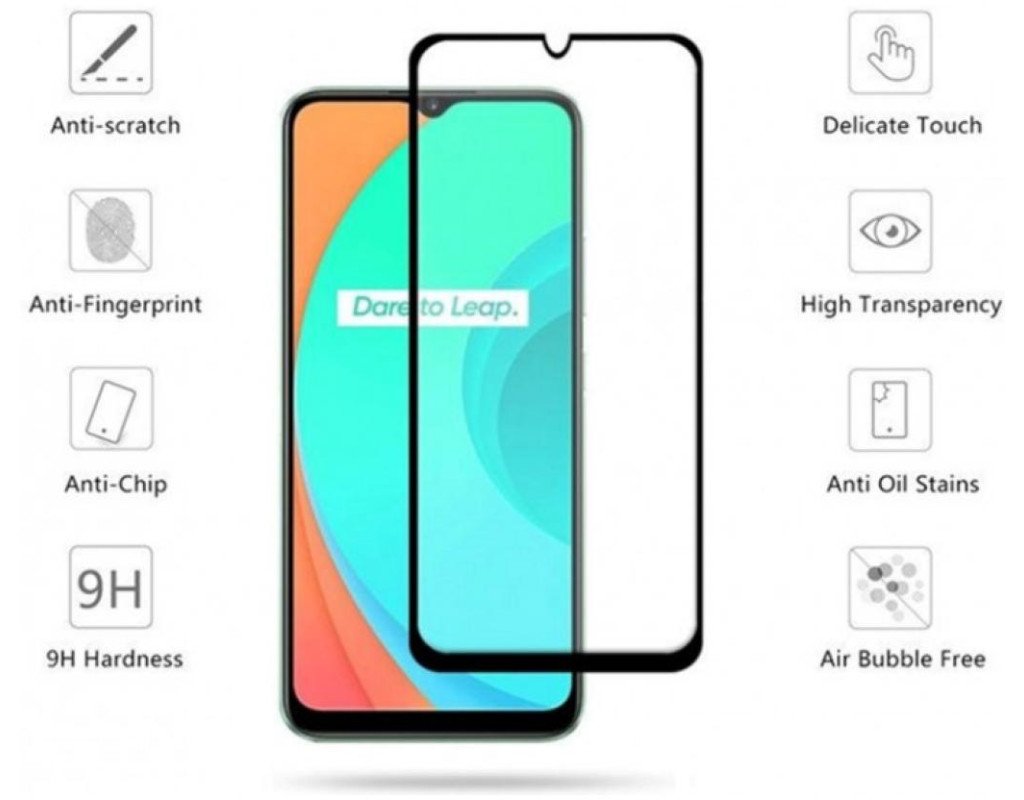 Стекло защитное Drobak Realme C11 Full Cover Full Glue (Black) (222223) (222223)