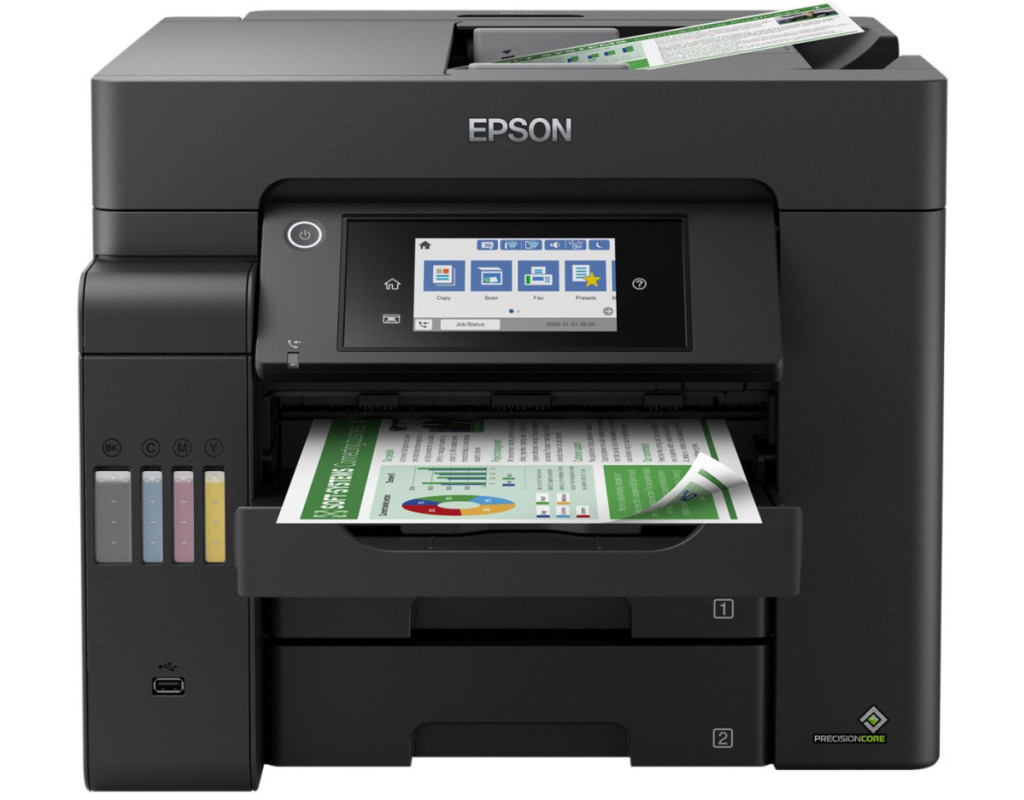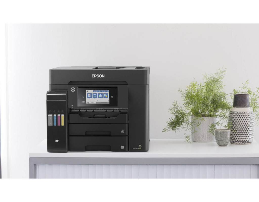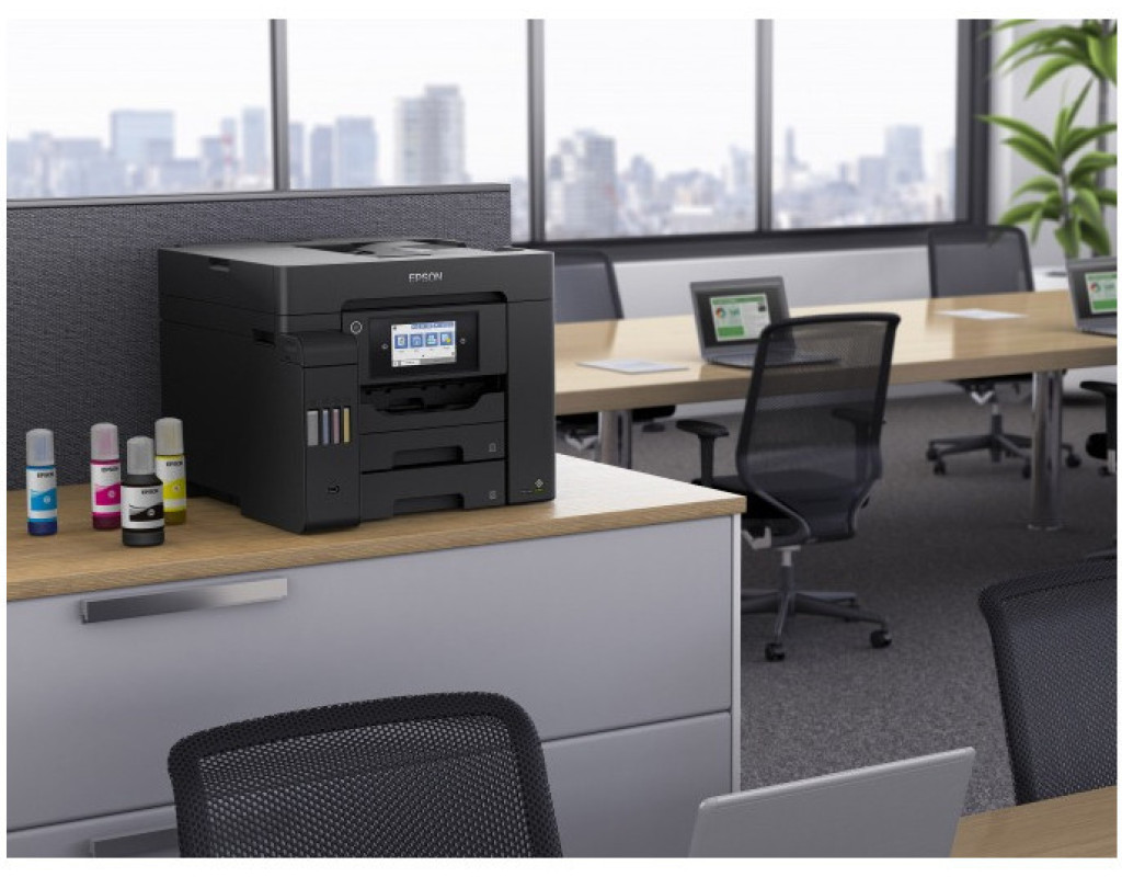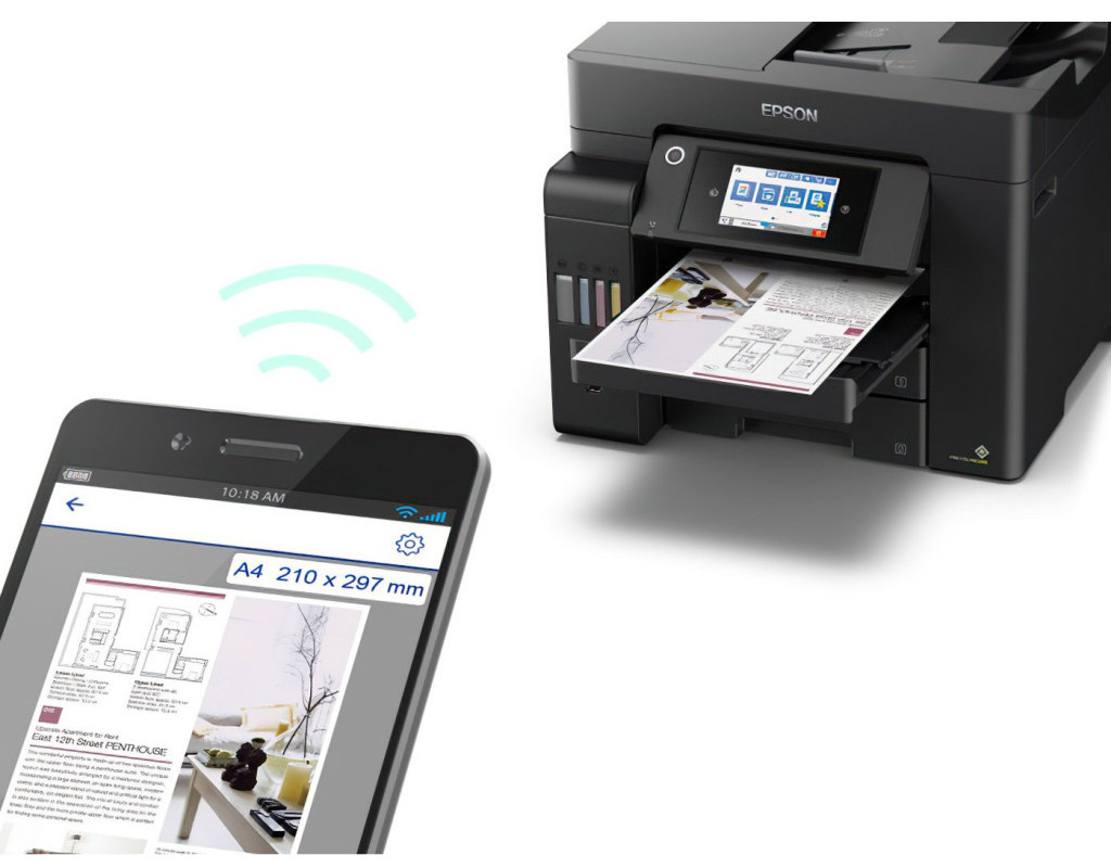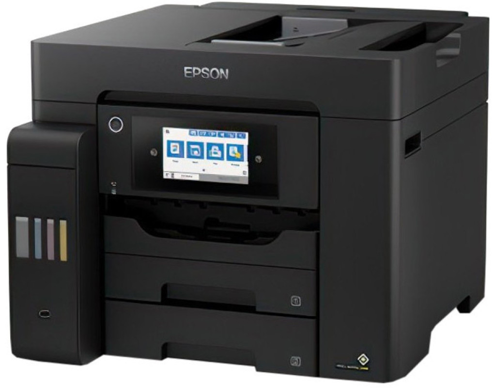 Epson L6550 — это высокоскоростное бескартриджное МФУ 4-в-1 (принтер-сканер-копир-факс) cо встроенными чернильными емкостями вместо картриджей. Оно специально создано для тех, кому необходимы экономичная печать документов различного формата и широкие функциональные возможности, включая работу по Wi-Fi Direct и Ethernet. В комплект поставки уже входит набор полноразмерных контейнеров с чернилами. Фронтальные чернильные емкости Особенность всех устройств серии «Фабрика печати Epson» – это печать без картриджей. Вместо картриджей Epson L6550 использует фронтальные чернильные емкости. Фронтальное расположение емкостей делает устройство более компактным и обеспечивает удобное отслеживание уровня чернил. Высокий ресурс расходных материалов Объем чернильных контейнеров к МФУ Epson L6550 в 10 раз превышает объем стандартных картриджей и составляет 70 мл цветных и 127 мл черных чернил. Полного комплекта чернильных контейнеров хватит на печать до 7500 ч/б и 6000 цветных страниц1. Высокая скорость печати Благодаря уникальной печатающей головке Epson PrecisionСore TFP4 Epson L6550 печатает со скоростью до 25 страниц в минуту в черно-белом режиме и 12 страниц в минуту в цвете по стандарту ISO2, значительно сокращая время на печать, что особенно оценят пользователи с большими объемами печати. Инновационная система заправки чернил «Key Lock» Система «Key Lock» не даст перепутать цвета при заправке. Секрет новой системы заправки в уникальной форме носика контейнера, которая совместима только с соответствующим по цвету заправочным отверстием по принципу ключа с замком. Новые контейнеры со встроенным клапаном перекрытия чернил Контейнеры с чернилами оснащены внутренним клапаном, который защищает от случайного проливания при переворачивании контейнера. Клапан открывается только при установке контейнера в отверстие для заправки, после чего чернила начинают поступать внутрь печатающей системы. Как только вы вынимаете контейнер из заправочного отверстия - клапан блокирует подачу чернил, исключая возможность случайного проливания. Пигментные чернила всех цветов При печати устройство использует уникальные пигментные чернила Epson, которые обеспечивают: Четкий текст и графику на обычной и фотобумаге; Мгновенное высыхание отпечатков; Стойкость к попаданию воды и выделению маркером. Сменная емкость для отработанных чернил МФУ Epson L6550 – устройство для бизнеса, рассчитанное на высокие нагрузки печати. При заполнении емкости для отработанных чернил пользователь может с легкостью заменить ее самостоятельно, не обращаясь в сервисный центр. Беспроводное подключение по Wi-Fi Основные преимущества беспроводной печати – экономия места на рабочем столе и печать из любой точки дома и офиса. Подключитесь к любому устройству с поддержкой Wi-Fi и используйте максимум возможностей беспроводной работы с принтером – печатайте и сканируйте документы и фотографии удаленно. Подключение по сети Ethernet Данное устройство дает возможность сетевого подключения, что делает его идеальным решением для работы с нескольких ПК в условиях офиса. Причём пользователи смогут не только отправлять задания на печать, но и сканировать изображения сразу на свой компьютер, что сэкономит их рабочее время и ускорит рабочий процесс. Печать с мобильных устройств Скачайте и установите одно из бесплатных приложений сервиса Epson C