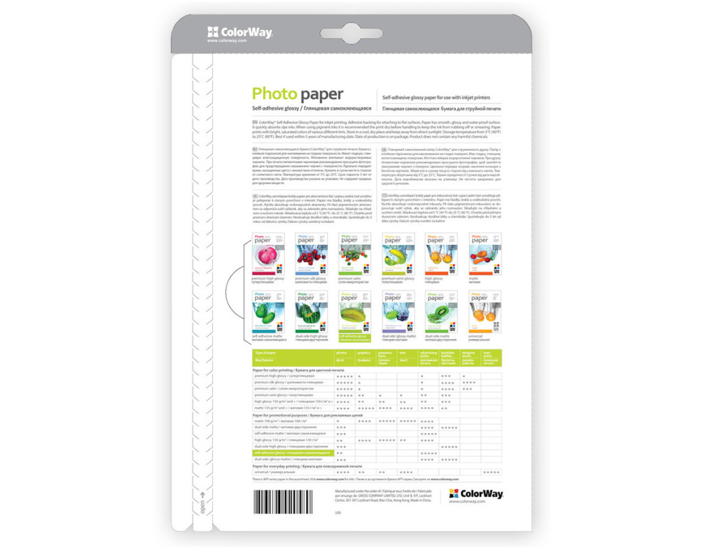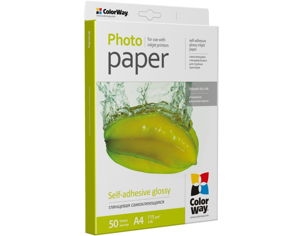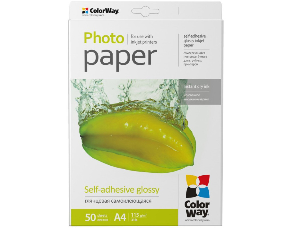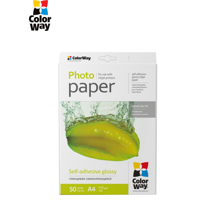 | ColorWay A4 (ПСГ115-50) (PGS1158050A4) имеет клейкую подложку для наклеивания на гладкие поверхности. Такая бумага имеют гладкую, блестящую, глянцевую влагозащищенную поверхность. Фотографии, отпечатанные на такой бумаге, обладают насыщенными и яркими цветами с множеством оттенков и цветовых градаций. Глянцевые бумаги по виду наиболее соответствуют фотографии. |