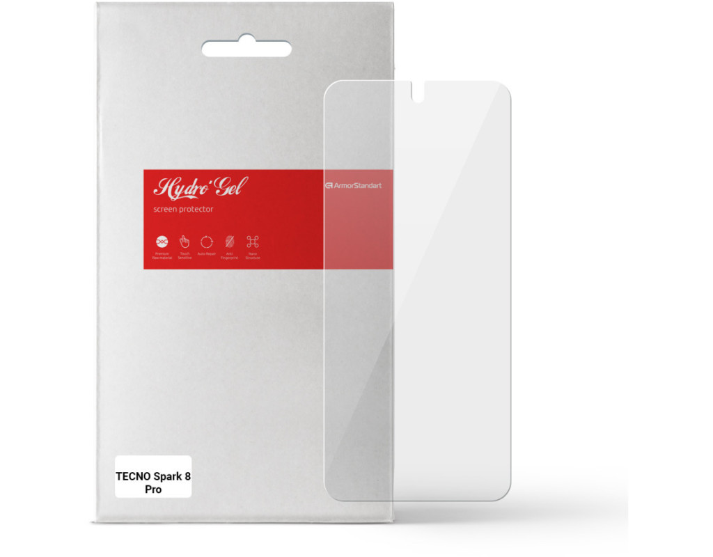 Назначение - для телефона, Вид покрытия - глянцевое, гидрогелевая, Совместимость с моделями - Tecno Spark 8 Pro, Количество в упаковке - 1 шт