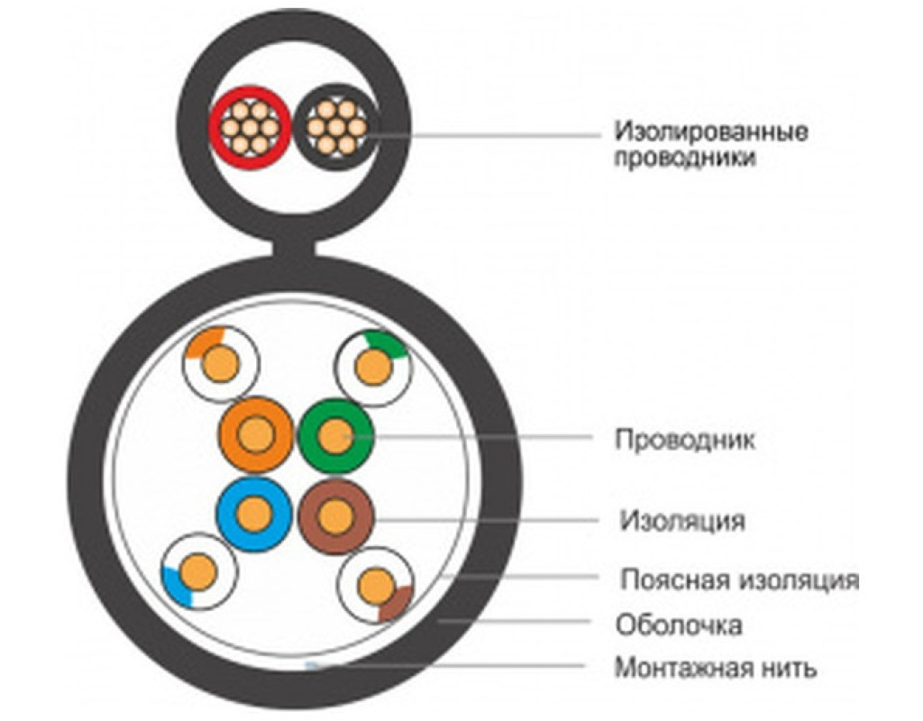 UTP кабель FinMark категории 5е предназначен для наружного применения в локальных сетях передачи данных с возможностью подачи электропитания к оборудованию: PBX, V.11, X.21, ISDN, Ethernet (10Base-T), ATM-25/52/155 Мбит/с, 100VG-AnyLAN, Fast Ethernet (100BASE-TX), Token Ring 16/100 Мбит/с, Gigabit Ethernet (1000BASE-T), Firewire 100 Мбит/с. Кабель прокладывается в телефонной канализации, в трубах, в коллекторах, по наружным стенам зданий. Оболочка кабеля витая пара выполнена из стойкого к ультрафиолетовому излучению полиэтилена (PE) черного цвета. Номинальный наружный размер кабеля 5,0×9,0 мм. Конструкция В конструкции кабеля предусмотрены два токоведущих медных проводника в полиэтиленовой изоляции для подачи электропитания на удалённые устройства (коммутаторы, маршрутизаторы, точки доступа и т.п.). Проводники питания имеют диаметр 0,75 мм (многожильные 7×0.25 мм) с изоляцией черного и красного цвета. Они собраны в общую кабельную конструкцию с витой парой. Такое решение является удобным, если подключение местного питания к устройствам невозможно или сильно затруднено. Общепринятая цветовая идентификация проводников: