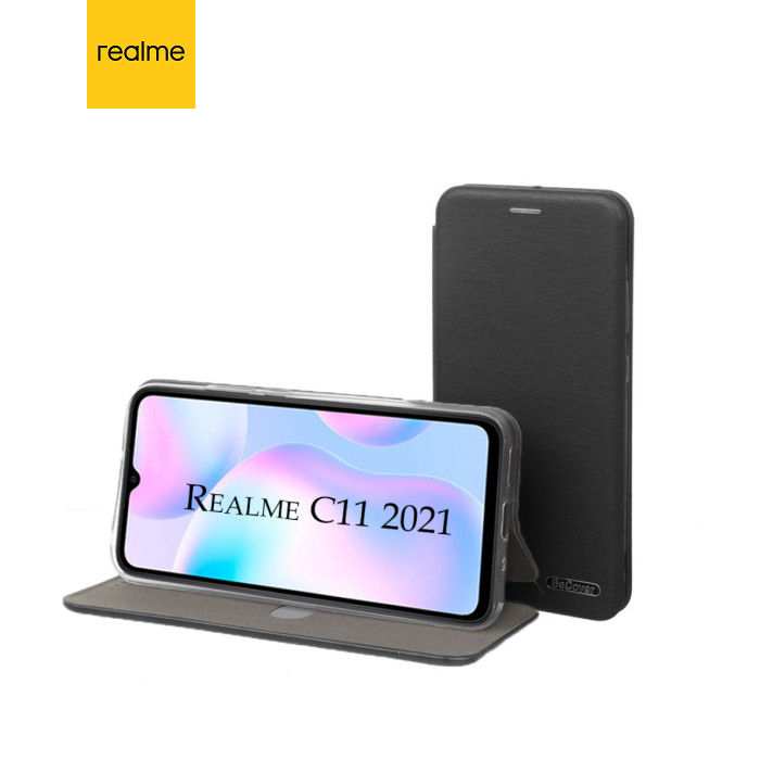 совместимость с моделями - Realme C11, Тип чехла для телефона - книжка, Назначение - модельный, Материал - искусственная кожа, Цвет - черный