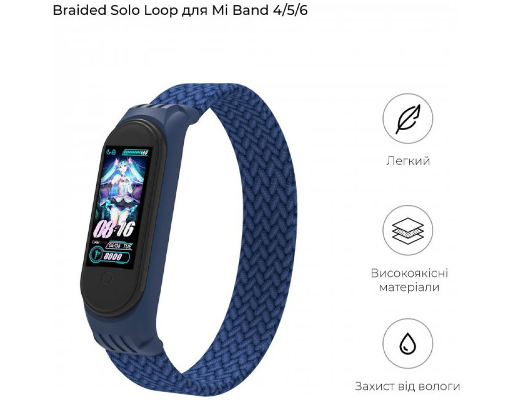 Ремешок для фитнес браслета Armorstandart Braided Solo Loop для Xiaomi Mi Band 4/5/6 Blue size S (ARM59178)