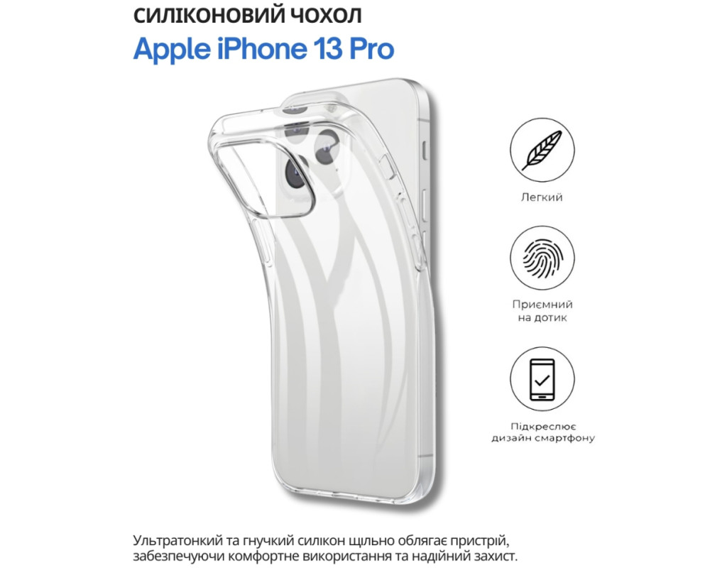 совместимость с моделями - Apple iPhone 13 Pro, Тип чехла для телефона - накладка, Назначение - модельный, Материал - силикон, Цвет - прозрачный