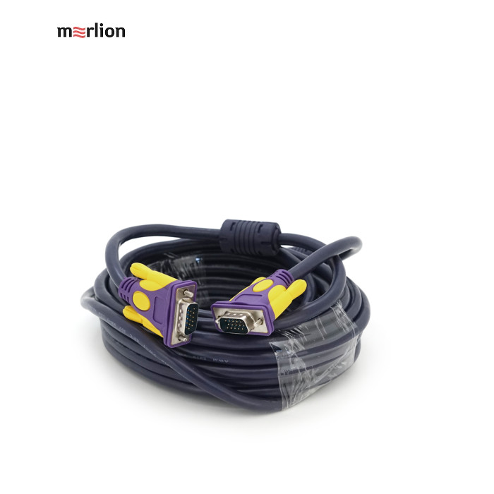 | Кабель Merlion VGA 3+4, 10м з екрануванням - кабель високої якості, для передачі зображення з пк, ноутбука, відеокарти на монітор, проектор або телевізор, а феритові фільтри позбавлять зображення зайвих перешкод. Характеристики: • тип кабелю - VGA 3+4 (тато-тато) • довжина – 10 м • феритові фільтри - 2 • колір фіолетовий • упаковка – пакет |