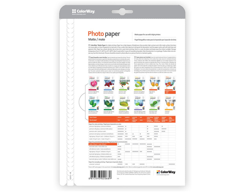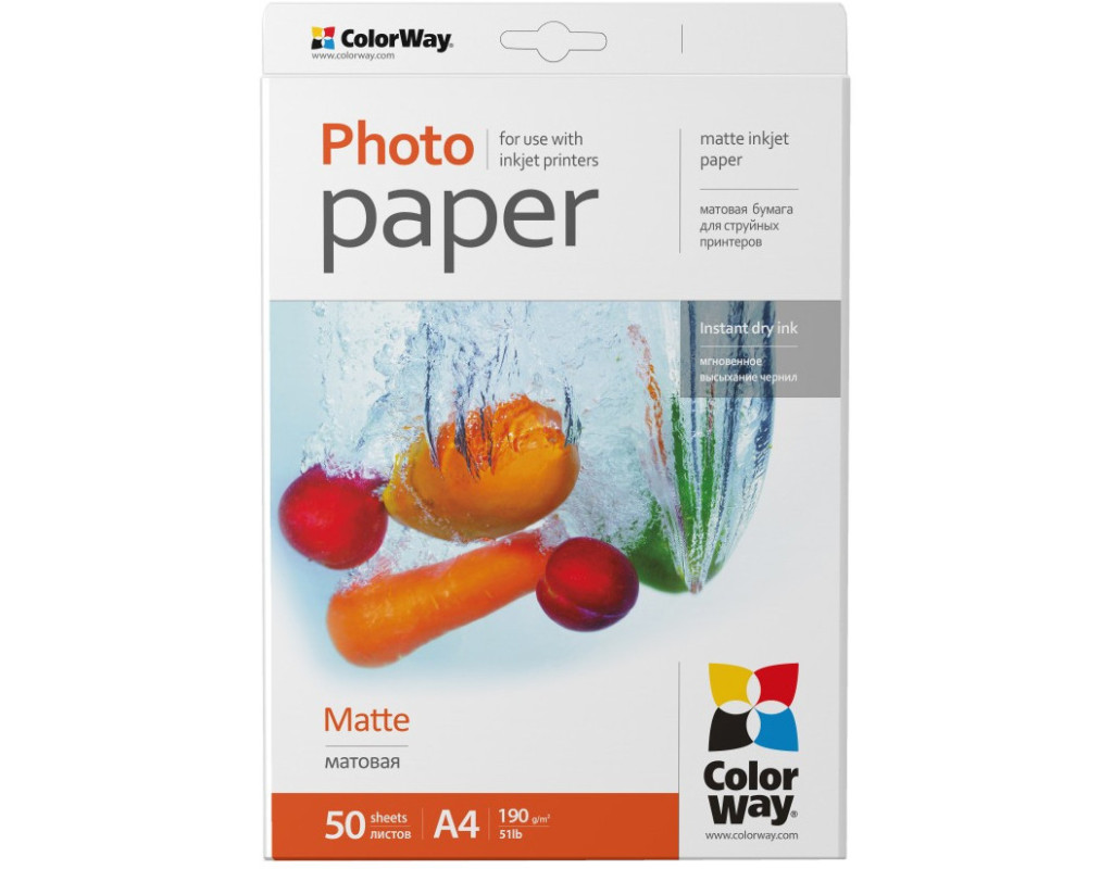 Матовая фотобумага ColorWay высокой плотности для струйной печати. Применяется для печати фотографий и качественных изображений. Универсальна в применении и устойчива к механическим повреждениям. Имеет высокую степень белизны, отсутствием блеска и ровную матовую шероховатую поверхность, которая хорошо воспринимается на ощупь. Обеспечивает высокий контраст, отличную детализацию, отсутствие бликов и отпечатков пальцев на распечатанном изображении. Обладает широкой цветовой гаммой и хорошим впитыванием водорастворимых, пигментных и сублимационных чернил чернил. Чем меньше у бумаги показатель плотности, тем меньше должна быть заливка листа чернилами. Эта модель бумаги предназначена только для печати на струйном принтере и персонального использования. Не содержит вредных для здоровья веществ. Хранить в сухом месте в стороне от солнечного света. |