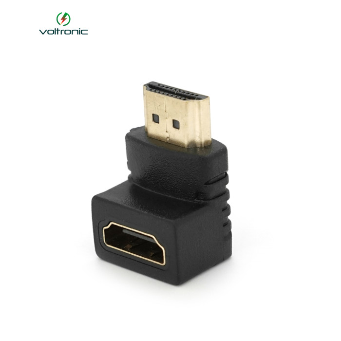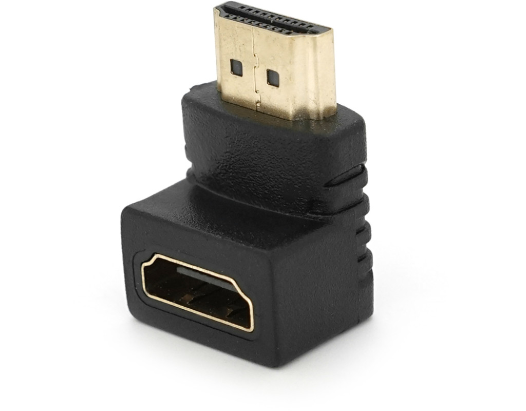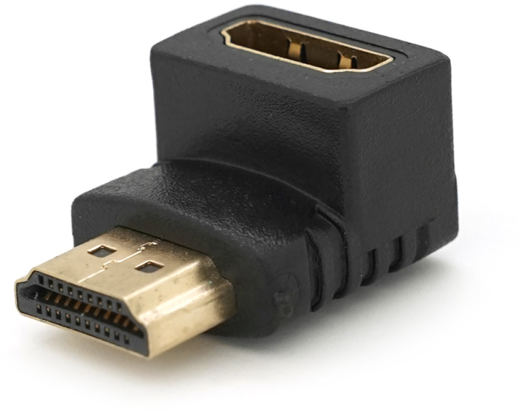 | Перехідник HDMI M / F, кутовий 90грд, позолота. Для компактного підключення прямого кабелю HDMI до телевізора з роз`ємами на задній площині. |