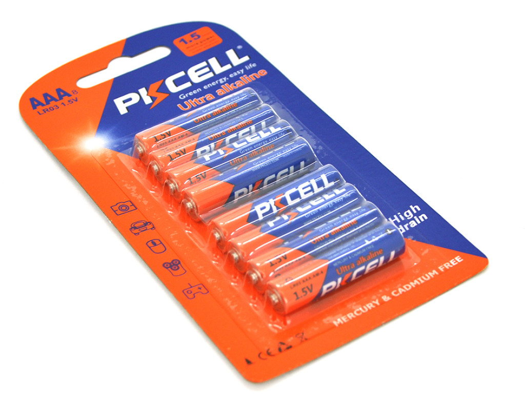 | Батарейка лужна PKCELL 1.5V AAA / LR03, 8 штук у блістері, ціна за блістер, Q10 |