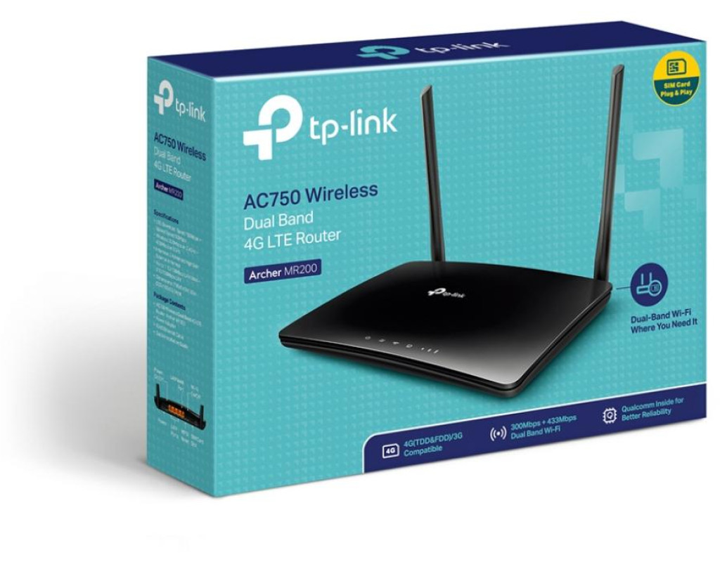 TP-LINK Archer MR200 — AC750 двухдиапазонный 4G LTE Wi-Fi роутер. Совместный доступ к сети 4G Используйте возможности 4G LTE на полную мощность и загружайте файлы со скоростью до 150 Мбит/с вместе с Archer MR200. Archer MR200 обеспечит вам совместный доступ к сети 4G LTE для множества устройств Wi-Fi, позволяя просматривать HD-видео, загружать файлы и вести видеоконференции без разрывов соединения. Большая зона покрытия и двухдиапазонный Wi-Fi 4G LTE-роутер Archer MR200 работает в двух частотных диапазонах, обеспечивая совокупную скорость беспроводного соединения до 733 Мбит/с. Два частотных диапазона 2.4 ГГц и 5 ГГц обеспечивают оптимальную работу устройства и минимизируют интерференцию сигнала. Использование современных технологий беспроводной связи и усовершенствованных антенн обеспечат надёжное соединение и большую зону покрытия сети. Настройка не требуется Благодаря встроенному 4G LTE-модему и слоту для SIM-карты все, что вам потребуется – это вставить SIM-карту и включить роутер. Использование Wi-Fi в сети 4G LTE ещё никогда не было настолько простым. Wi-Fi там, где он нужен Archer MR200 обеспечивает непревзойдённое удобство в работе. Устройство представляет собой подходящее Wi-Fi решение для различной рабочей среды: для дома, для офиса, вдали от города или на производственной площадке. Порт WAN для резервного подключения Благодаря переключаемому порту WAN/LAN Archer MR200 обеспечивает множество типов подключения, в том числе подключение с помощью кабельного, оптоволоконного и DSL-модема. |