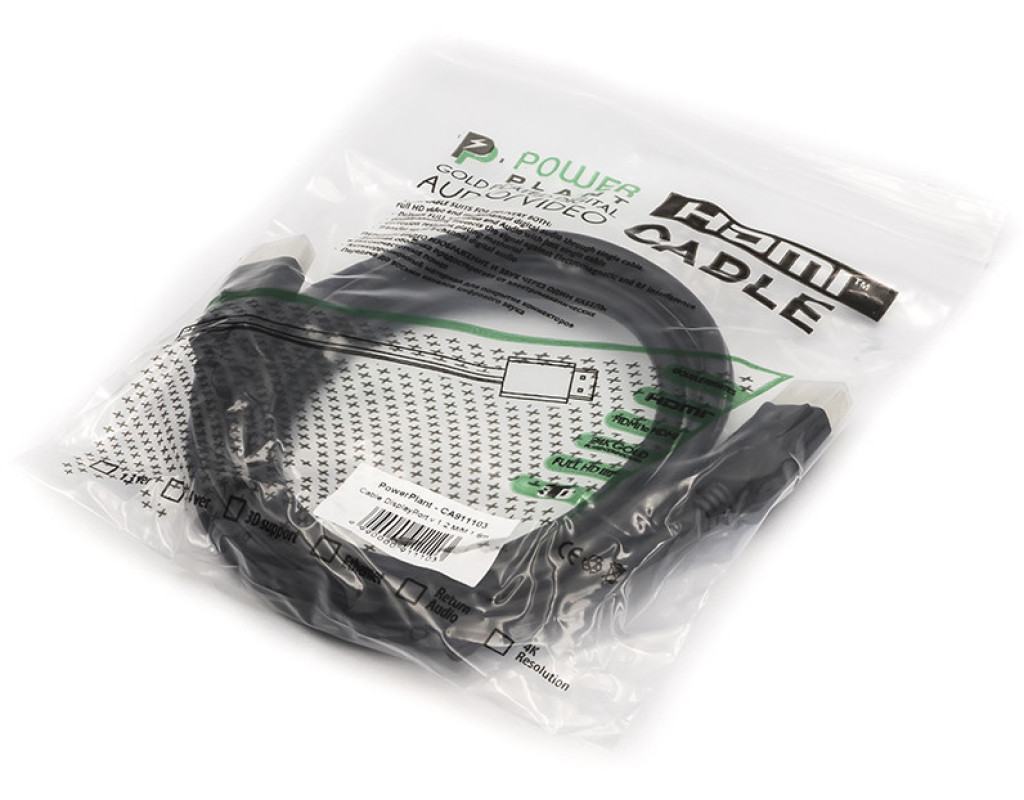 | Кабель PowerPlant DisplayPort M/M v1.2, 1.8м DisplayPort - стандарт сигнального интерфейса для цифровых дисплеев. DisplayPort предполагается к использованию в качестве наиболее современного интерфейса соединения аудио и видеоаппаратуры, в первую очередь для соединения компьютера с дисплеем, или компьютера и систем домашнего кинотеатра. |