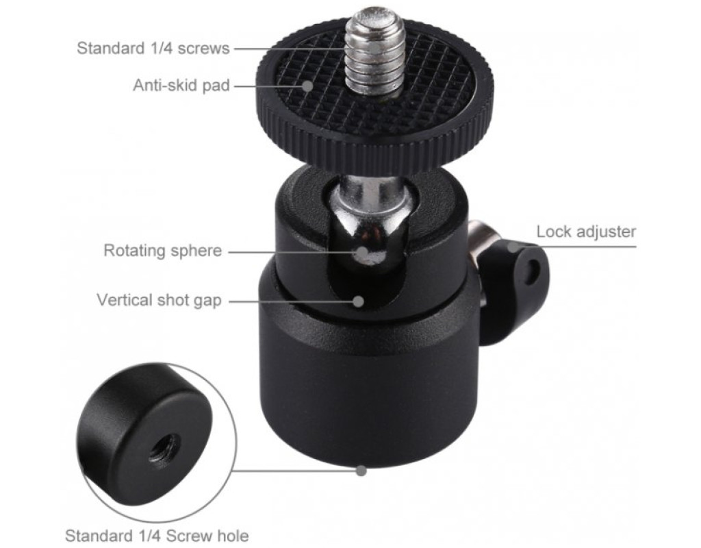 Эта профессиональная миниатюрная шаровая головка станет отличным аксессуаром, который сделает любой штатив универсальным. Блокирующая шаровая головка позволяет быстро и легко настроить камеру практически в любом положении. Изготовлена из металла с высокой прочностью и стабильностью. Легкая и портативная, идеально подходит для путешествий. Размер в упаковке: 140 х 160 х 23 мм |