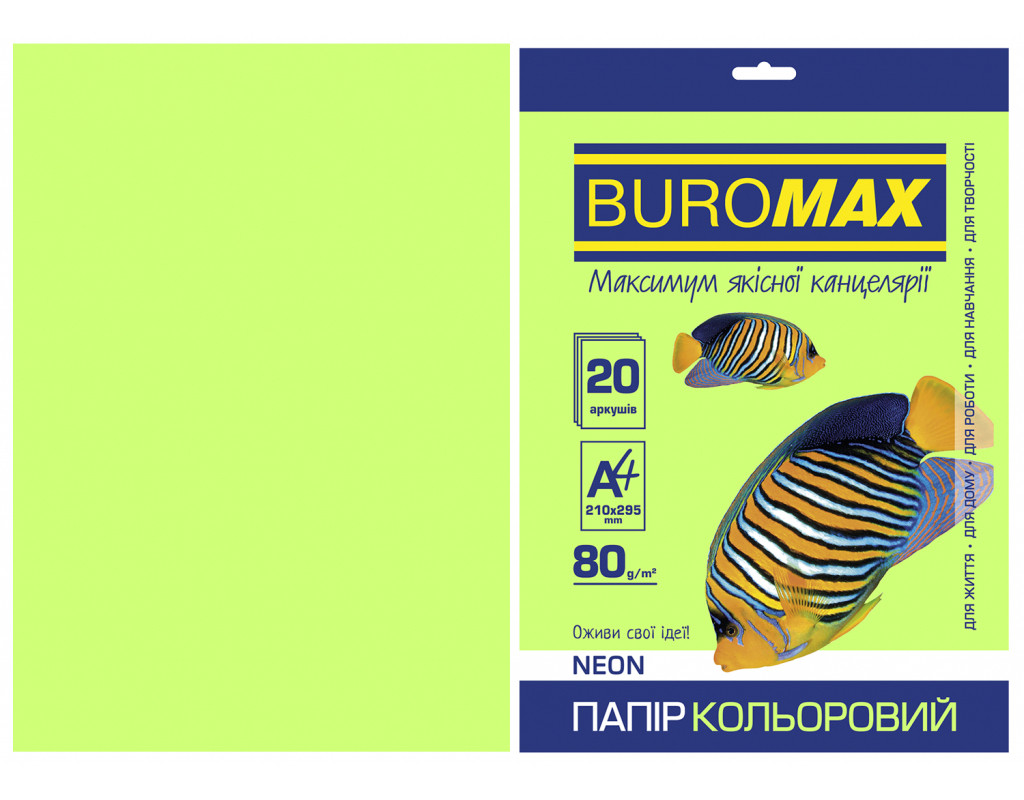 Бумага Buromax А4, 80g, NEON green, 20sh (BM.2721520-04)