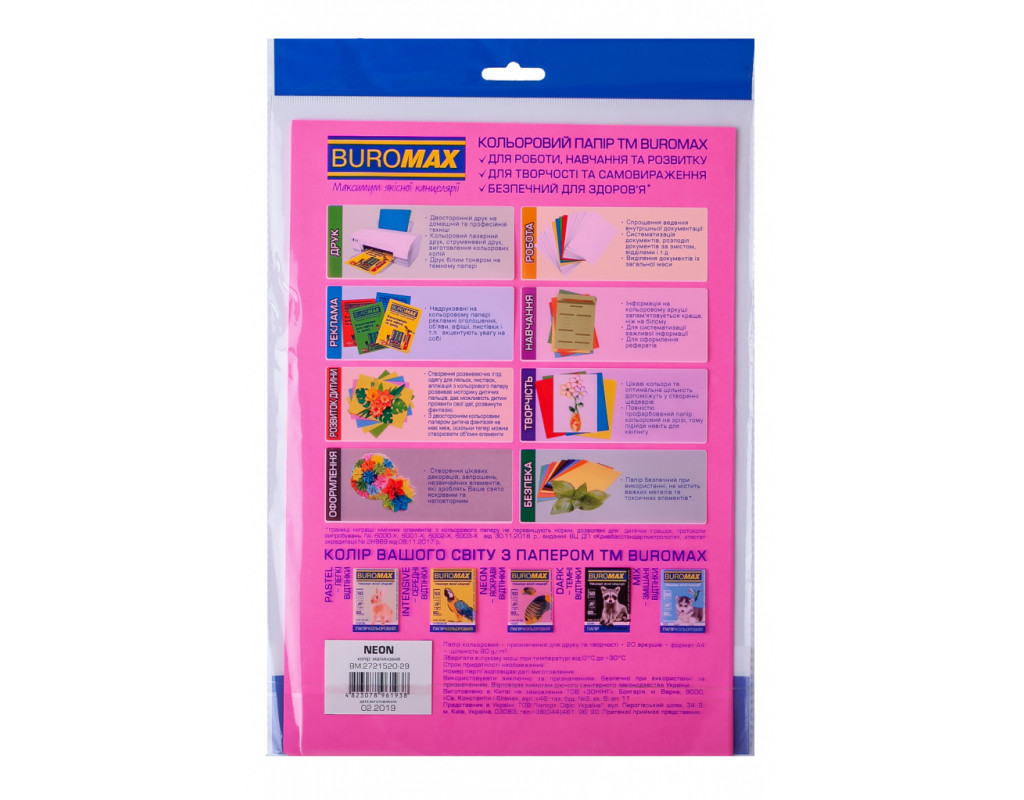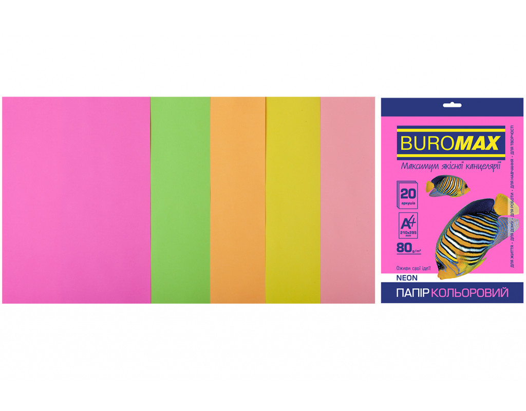 Бумага Buromax А4, 80g, NEON, 5colors, 20sh, EUROMAX (BM.2721520-99)