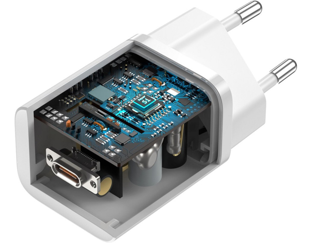 Baseus Super Silicone PD Charger 25W (1Type-C) + With Cable Type-C to Type-C 3A (1m) — сетевое зарядное устройство, оснащенное разъемом Type-C.
