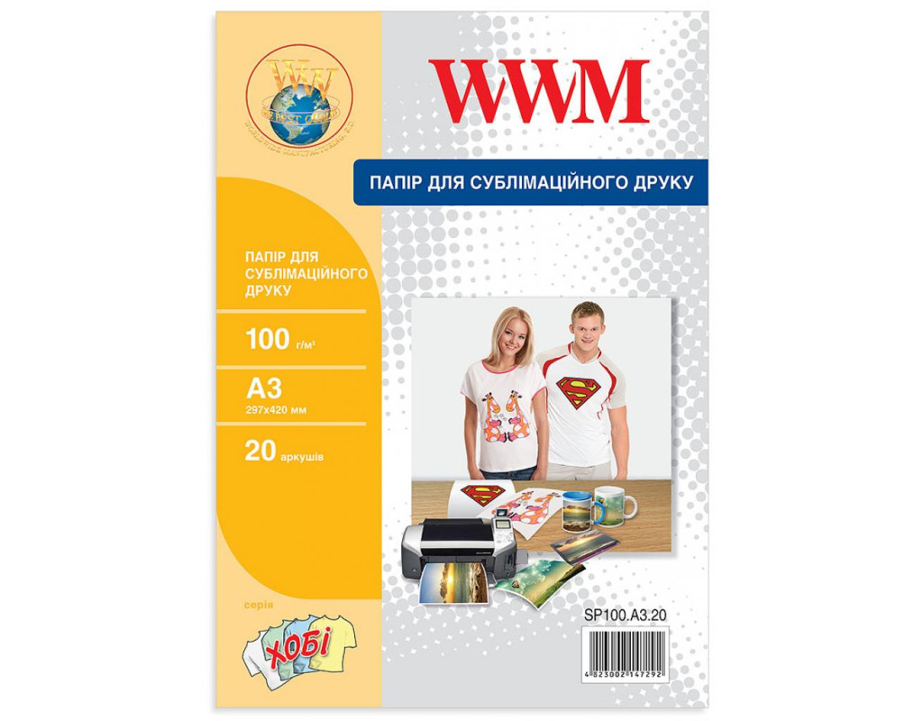 Бумага WWM A3 Sublimation (SP100.A3.20) Особенности бумаги: производитель: WWM; плотность, г/м.кв.: |