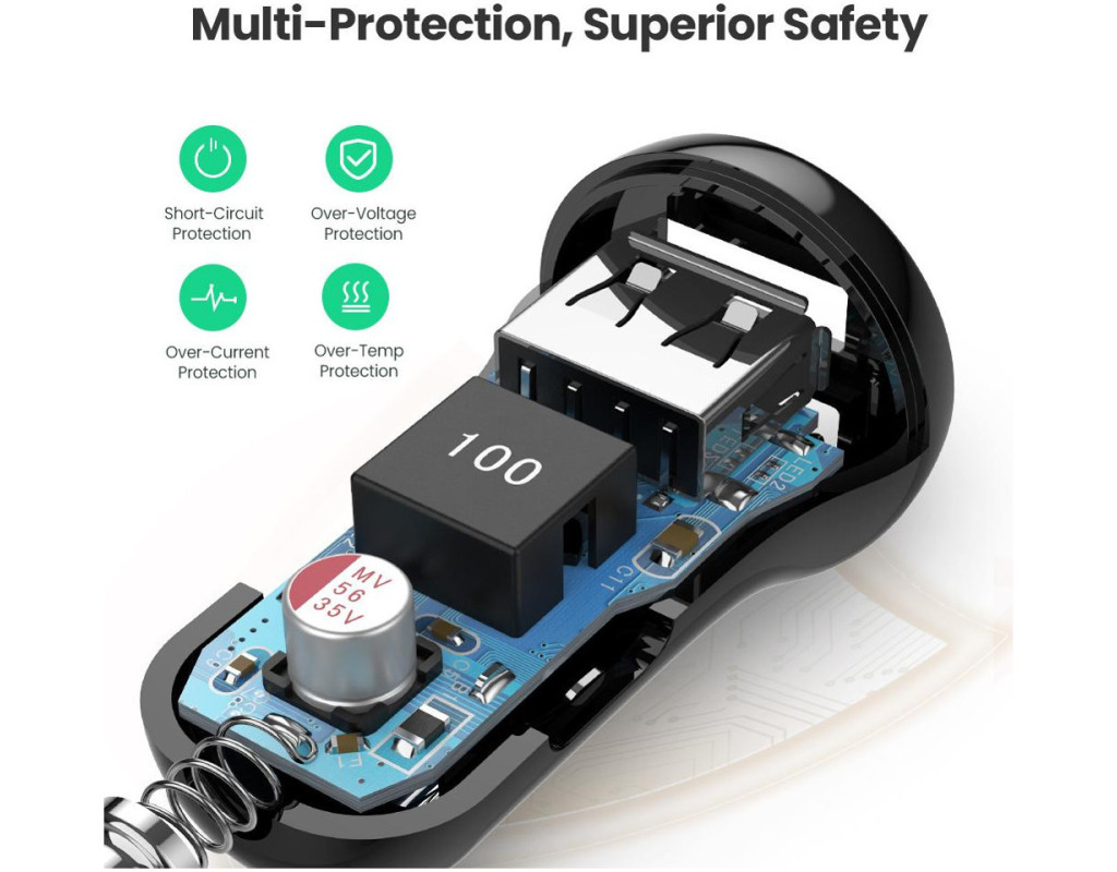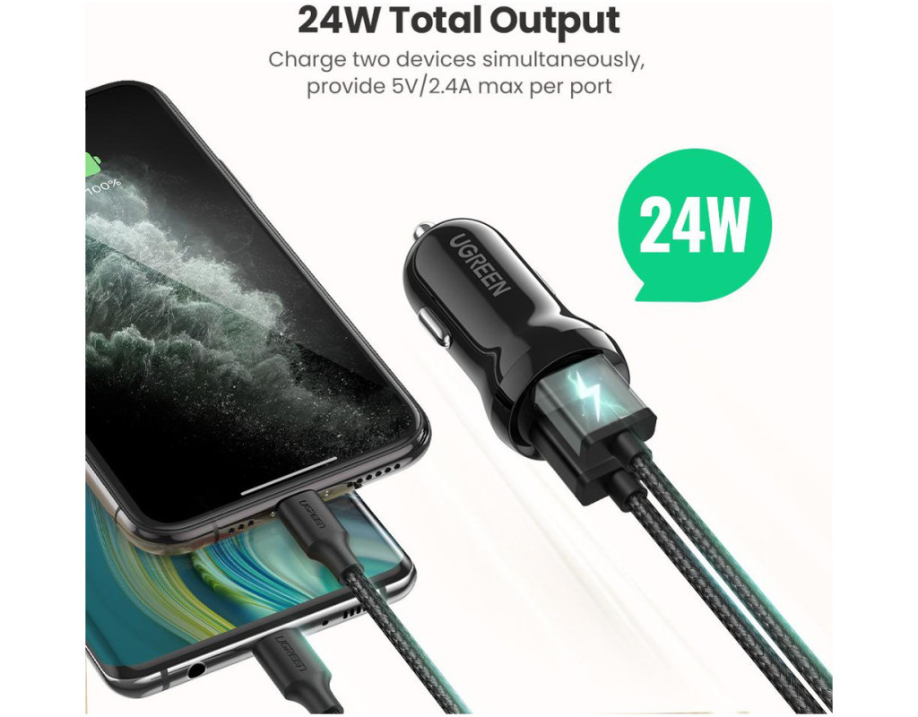 Зарядное устройство Ugreen ED018 24W 2xUSB Car Charger (Black) (50875)