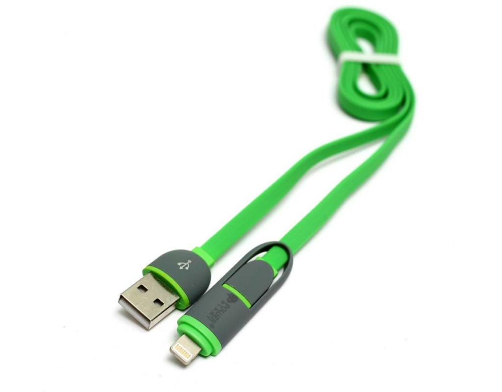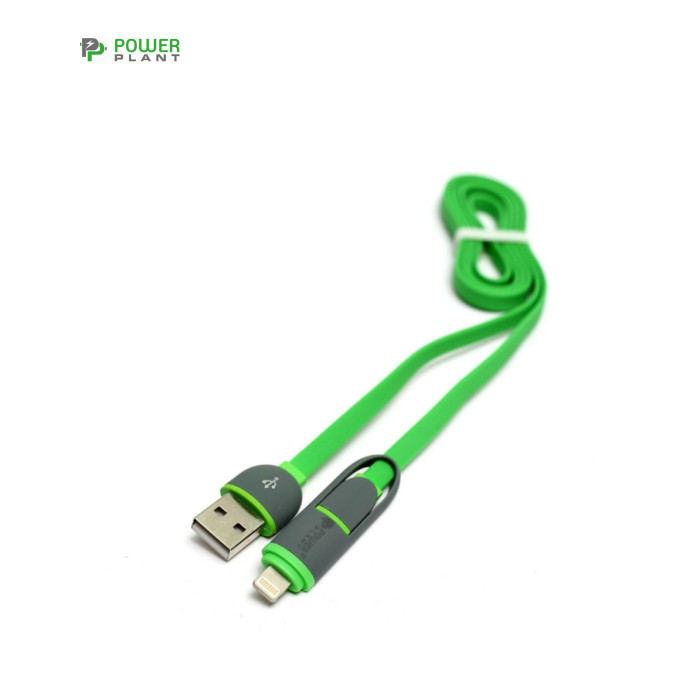PowerPlant Quick Charge 2A 2-в-1 flat USB 2.0 AM – Lightning/Micro 1м (KD00AS1291)