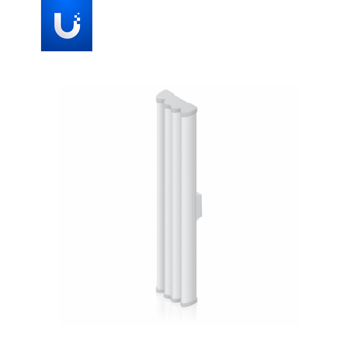 Антенна Wi-Fi Ubiquiti AM-5G20-90 - секторная антенна, которая дает возможность создавать ячеечные структуры покрытия Wi-Fi и строить базовые станции с покрытием 90 °. Коэффициент усиления AM-5G-20-90 - 20 дБи и ширина луча 90 °, то есть для кругового покрытия необходимо установить четыре таких антенны.