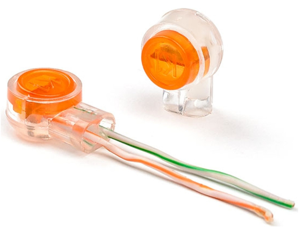 Соединитель Scotchlok предназначен для сращивания жил кабелей типа ТП диаметром от 0,4 до 0,9 мм и любым типом изоляции до 2,08 мм. Соединитель заполнен гидрофобным заполнителем, предотвращающим проникновение влаги в контакты. Не требует зачистки изоляции, ускоряет и упрощает процесс сращивания пар.