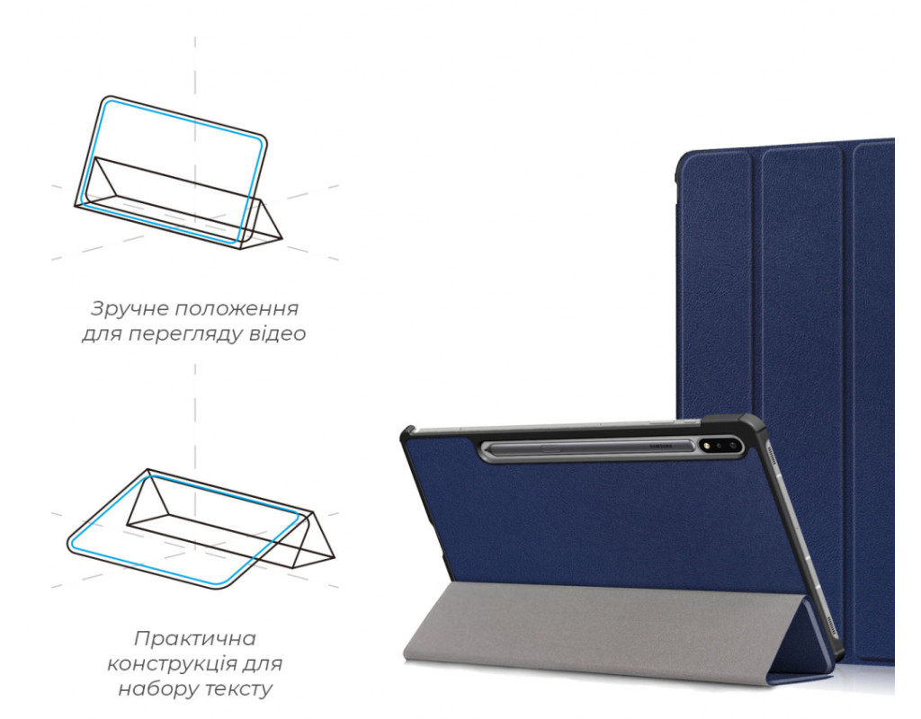 Тип - обложка, совместимость с моделями - Samsung Galaxy Tab S7, Samsung Galaxy Tab S7(T870/875 ), Samsung Galaxy Tab S7 SM-T875, диагональ - 11, Способ крепления - уголки, способ закрытия - магнит, Материал - полиуретан, синий