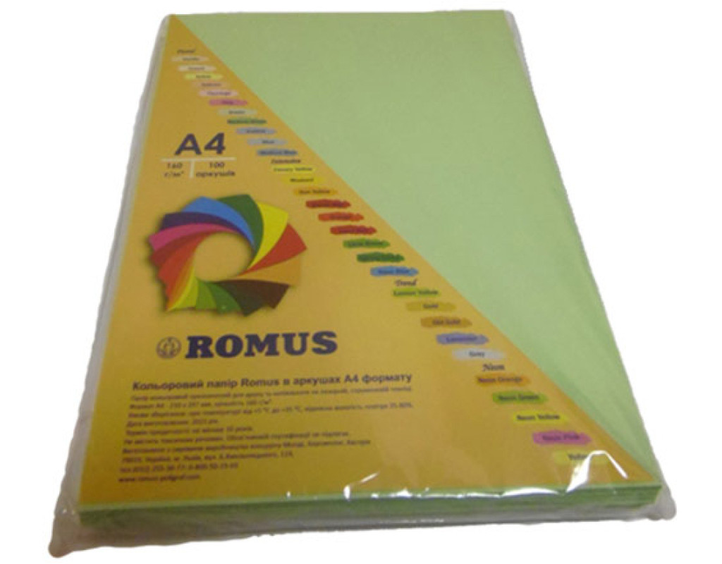 Папір кольоровий Romus формату A4 допоможе організовувати ваші щоденні офісні завдання, підійде для різних видів творчості та для друку презентаційних матеріалів. Універсальний папір, для розв'язання багатьох задач, де вимагається колір. Особливості: