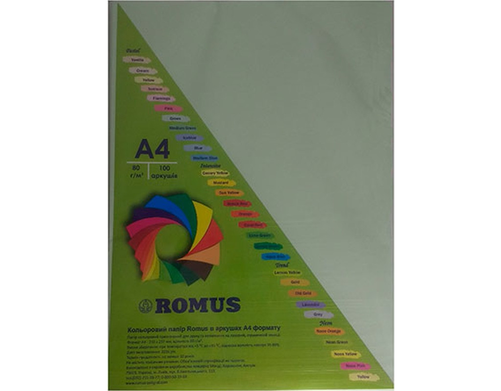 Папір кольоровий Romus формату A4 допоможе організовувати ваші щоденні офісні завдання, підійде для різних видів творчості та для друку презентаційних матеріалів. Універсальний папір, для розв'язання багатьох задач, де вимагається колір. Особливості: