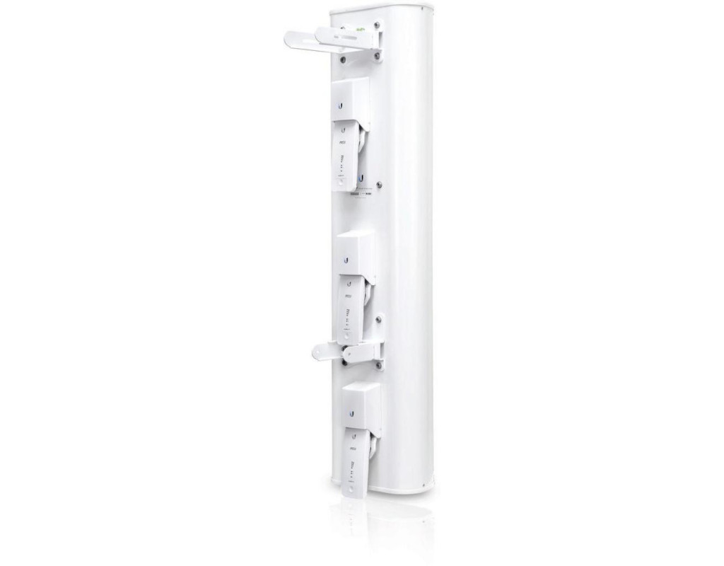 Это уникальная антенна, созданная инженерами Ubiquiti специально для совместного использования с точками доступа Rocket 5AC PRISM. Главной особенностью новой антенны является возможность установки до 3 точек доступа одновременно, благодаря чему базовая станция, созданная на основе AirPrism Sector 5AC-90-HD, обеспечивает рекордную пропускную способность — свыше 1.5 гб/сек. Антенна относится к секторному типу и имеет диаграмму направленности, равную 90 градусом в горизонтальной плоскости. Главной особенностью новой антенны является возможность использования до 3 точек доступа одновременно. При этом каждая из Rocket 5AC PRISM получает собственный сектор охвата, составляющий 30 градусов. Таким образом, достигается идеальная согласованность работы всей системы, точки доступа не создают перекрестные помехи и работают в строго заданной индивидуальной зоне. Коэффициент усиления новой антенны достигает 22 dBi, поляризация двойная линейная. Для подключения точек доступа используются 6x RP-SMA male разъемов. AirPrism Sector 5AC-90-HD имеет солидные размеры, ее длина достигает 1.3 метра при весе 13.1 кг. Тем не менее, антенна имеет высочайшую прочность, выдерживая ураганные порывы ветра скоростью до 200 км/час. Диапазон эксплуатационных температур от — 40 до + 80 градусов позволяет эксплуатировать антенну в самых суровых условиях без опасений за ее работоспособность, а благодаря оригинальной платформе крепления для Rocket 5AC PRISM, точки доступа не только просто и надежно крепятся к корпусу антенны, но и получают дополнительную защиту от повреждений в виде специального пластикового кожуха. |
