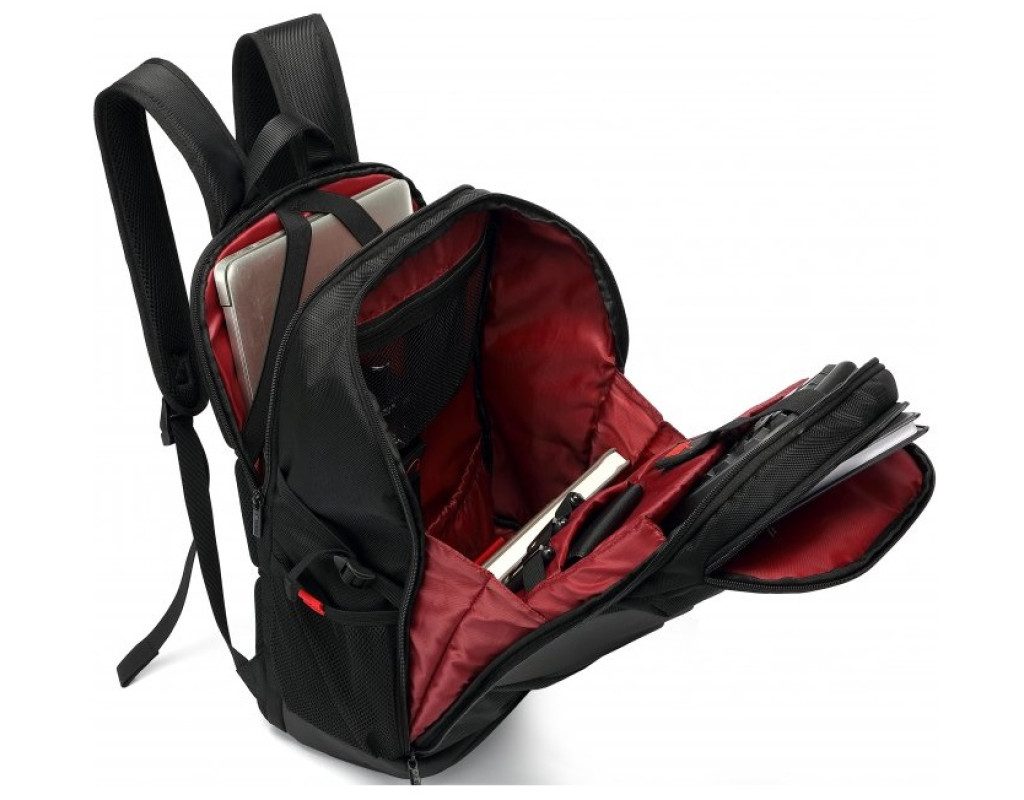 Рекомендуемый размер ноутбука - 15.6", Материал - полиэстер, объем - 22 л, Особенности - боковые карманы, вентиляция плечевых лямок, Цвет - черный