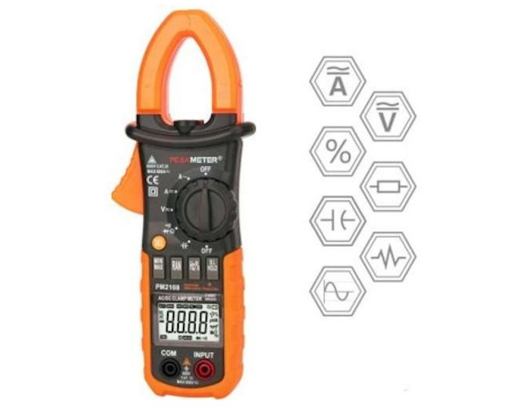 Токоизмерительные клещи с функцией мультиметра PROTESTER PM2108 – это профессиональный измерительный прибор который может не только измерять постоянный и переменный ток (клещами), но и обладает всеми возможностями современного мультиметра. Они обладают такими основными возможностями: