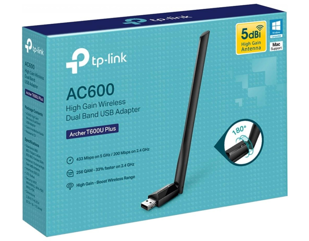 Высокоскоростной двухдиапазонный адаптер Archer T600U Plus принимает сигналы Wi-Fi на двух разных диапазонах. Поддержка 256QAM увеличивает скорость передачи данных 2.4 ГГц до 200 Мбит/с, обеспечивая повышение производительности на 33%. Скорость 200 Мбит/с в диапазоне 2.4 ГГц идеально подходит для обычного использования, например для веб-серфинга на устаревших устройствах. Скорость 433 Мбит/с в диапазоне 5 ГГц идеально подходит для потоковой передачи HD и онлайн-игр без задержек. Увеличенный диапазон Archer T600U Plus имеет одну внешнюю антенну с высоким коэффициентом усиления 5 дБи для обеспечения более надежной передачи и приема сигнала. Наслаждайтесь стабильным Wi-Fi-соединением по всему дому. Регулируемая антенна Поверните и отрегулируйте антенну в разных направлениях, чтобы улучшить работу и производительность в различных условиях. |