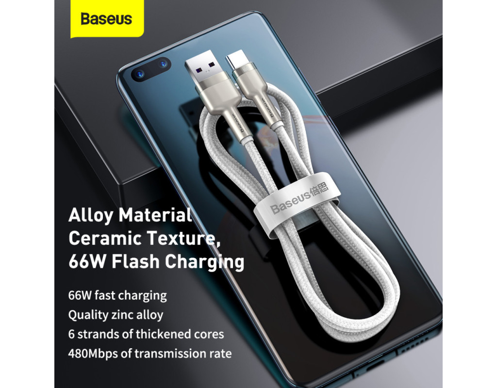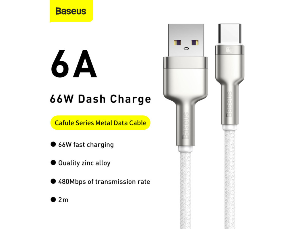 Baseus Cafule Metal Data Type-C 66W (2m) – кабель для зарядки и передачи данных, оснащенный разъемом Type-C.