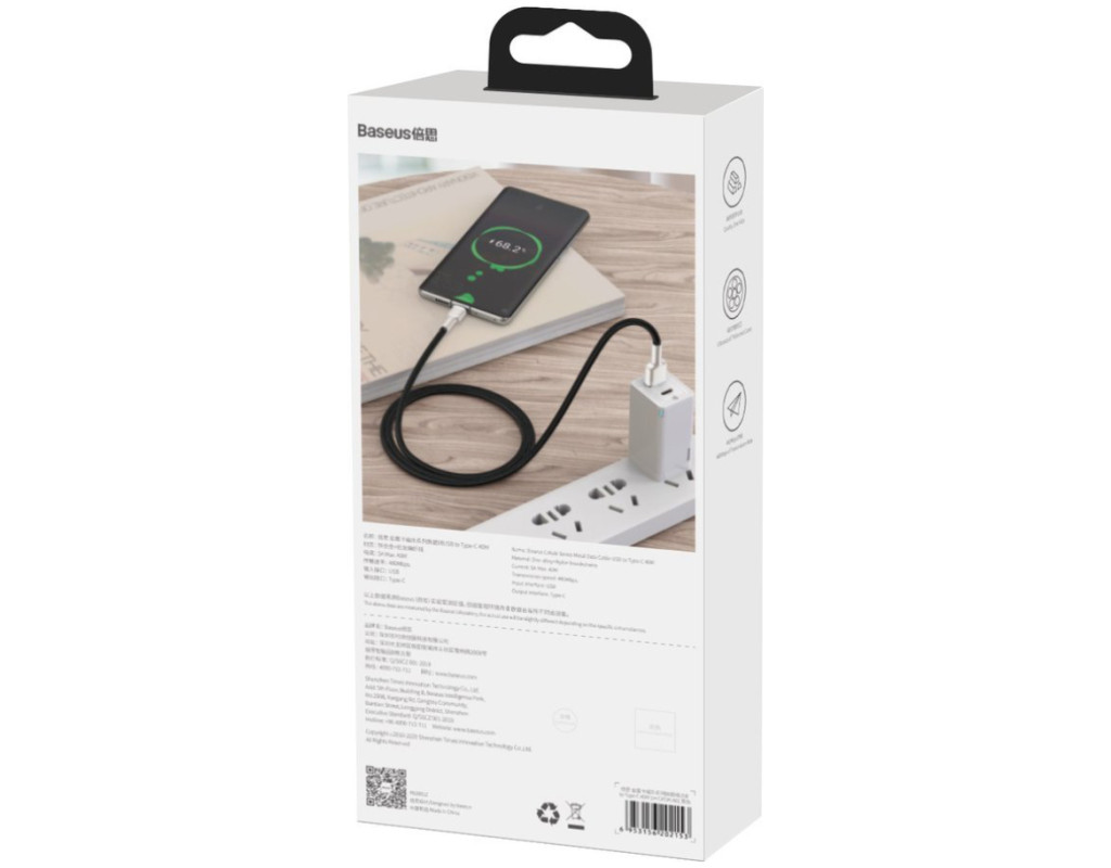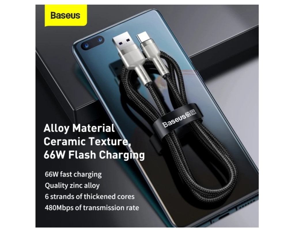 Дата кабель USB 2.0 AM to USB-C 1.0m Cafule Metal 66W black Baseus (CAKF000101)