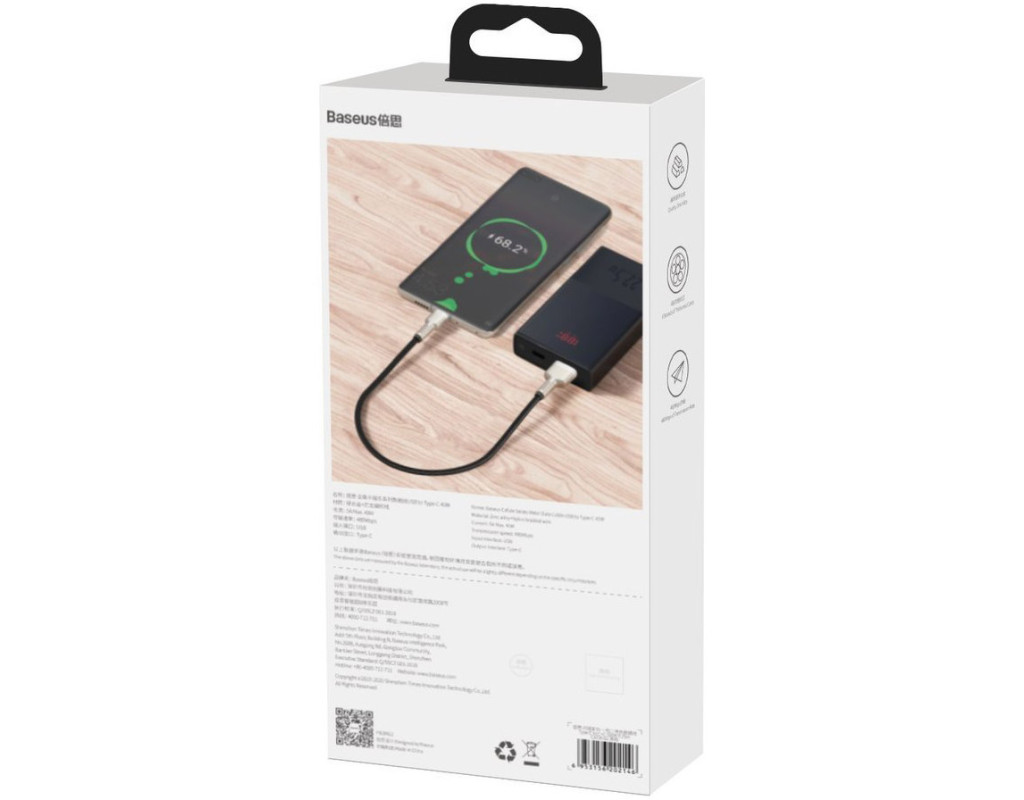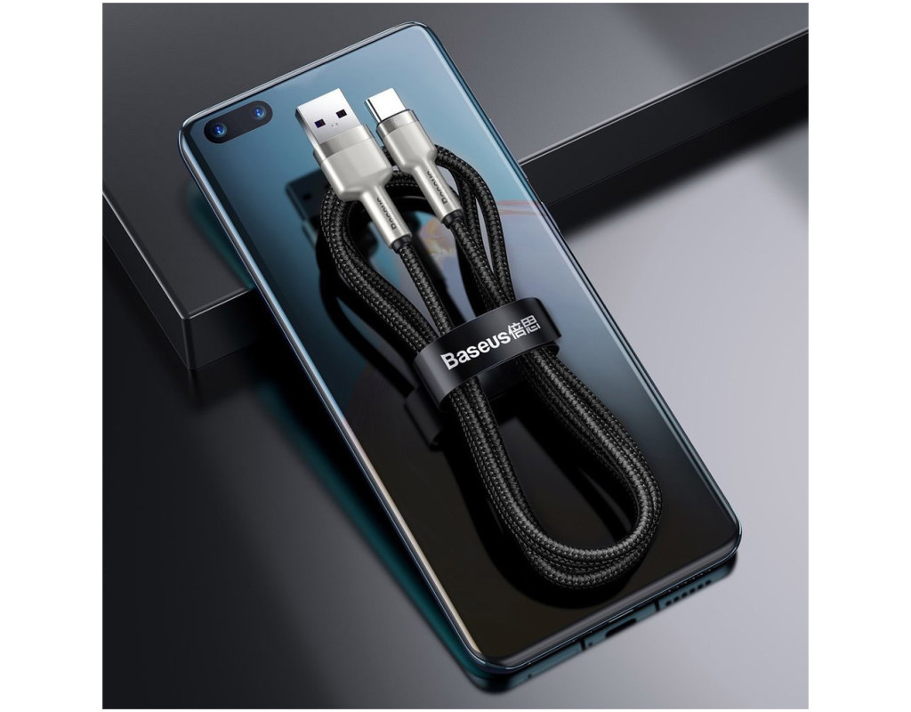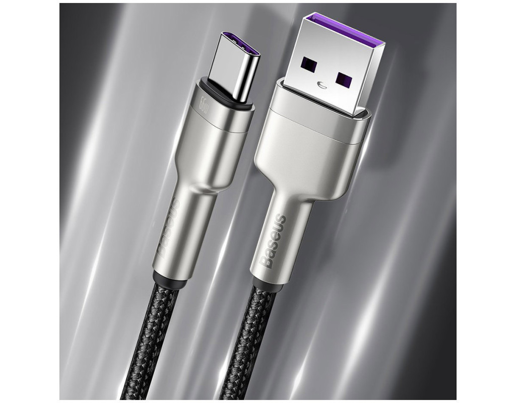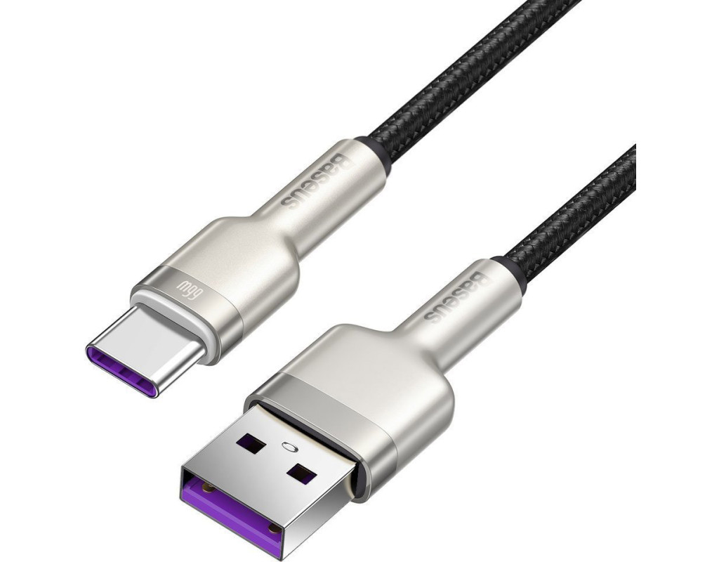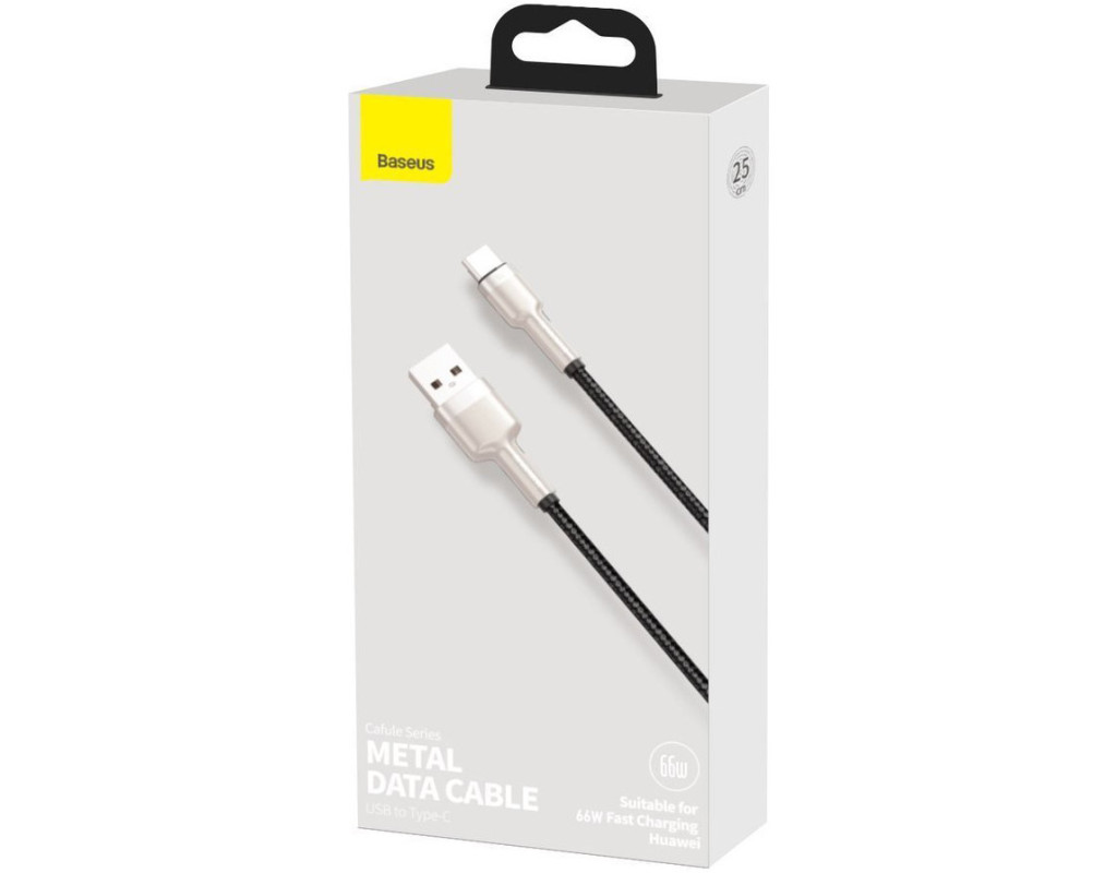 Дата кабель USB 3.1 AM to USB-C 0.25m 6.0A 66W Cafule Series Metal Black Baseus (CAKF000001)