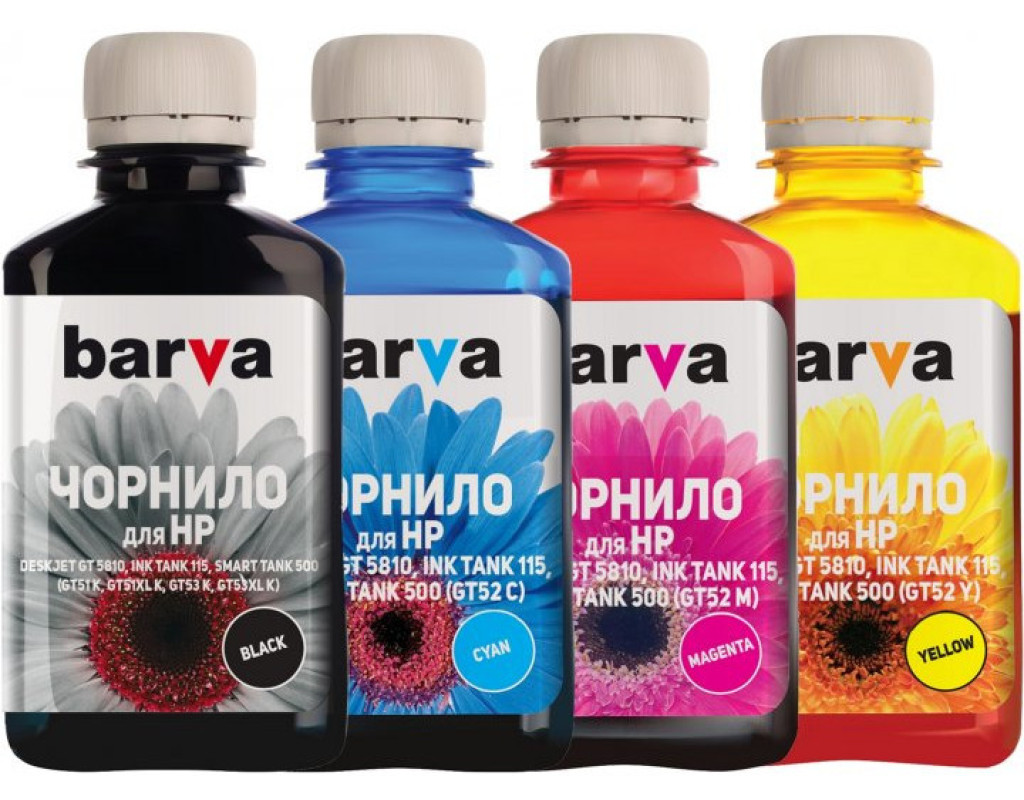 Чернила Barva HP GT53/GT52, 4x180 мл, BK/C/M/Y (HGT53-180-MP)