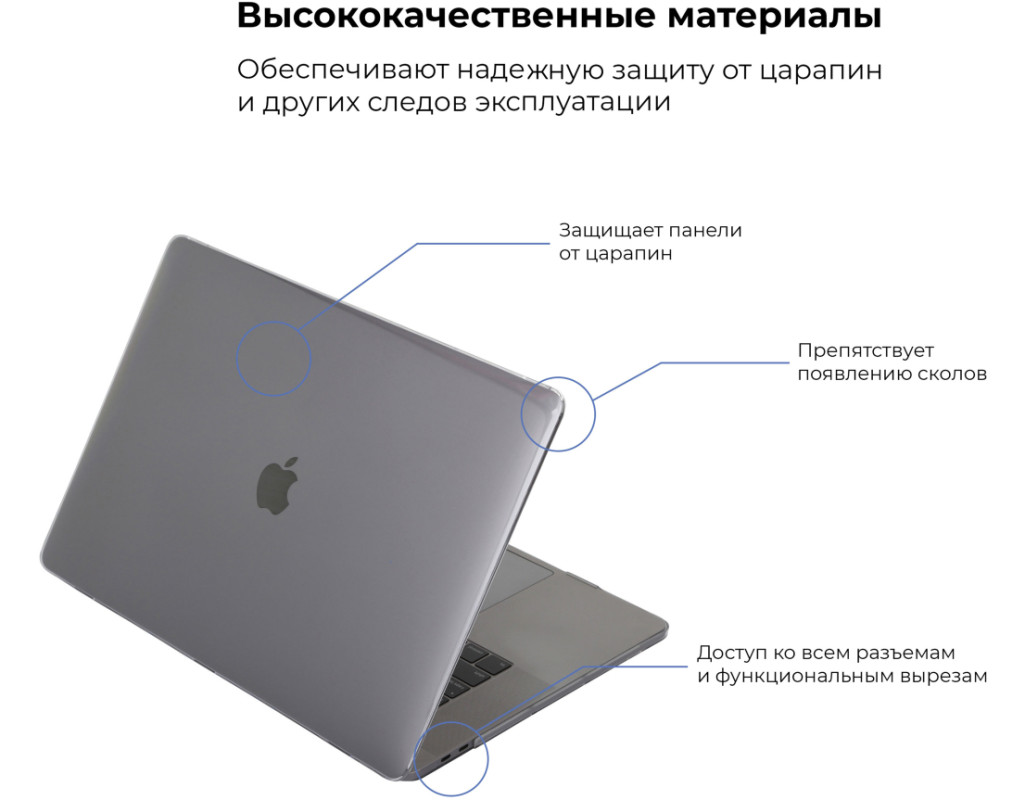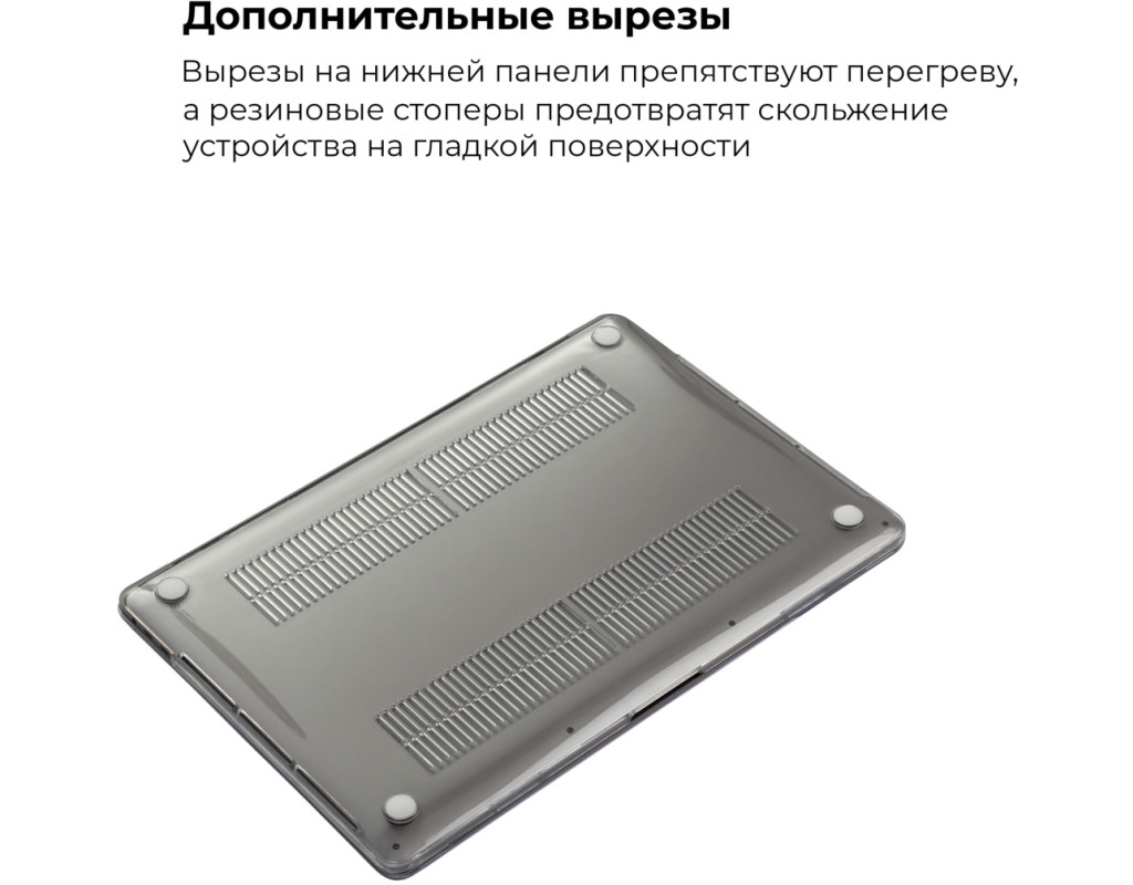 Чехол-накладка ArmorStandart — стильный и надежный аксессуар для Macbook. Она изготавливается из высококачественных материалов и обеспечивает надежную защиту от царапин и других следов эксплуатации. Чехол очень тонкий и легкий, а соответственно никак не отразится на габаритах ноутбука. Благодаря прозрачности, он выгодно подчеркивает стильный и минималистичный дизайн MacBook. Конструкция нижней части чехла обеспечивает доступ ко всем разъемам, функциональным вырезам, а также системам охлаждения MacBook, что предотвращает перегрев устройства. Резиновые стоперы по углам нижней накладки обеспечат комфортное использование ноутбука на скользких поверхностях. Особенности: