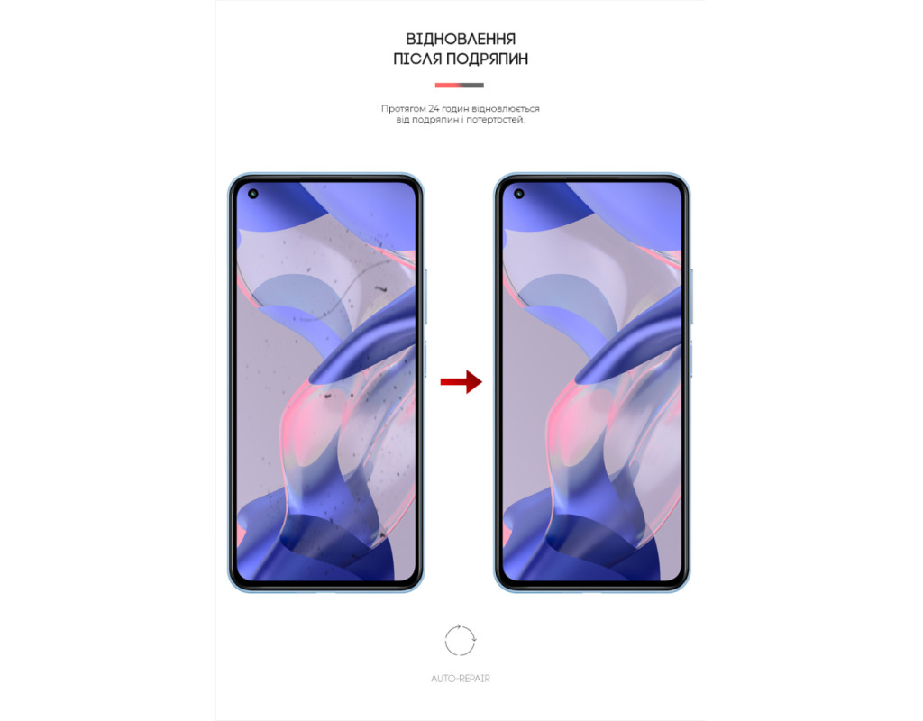 Свойство Auto-Repair - благодаря использованию гидрогеля, пленка восстанавливается от косметических царапин и потертостей в течение 24 часов.