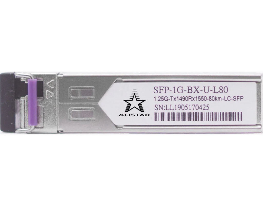 Модуль SFP Alistar Модуль SFP 1000BASE-BX 1SM WDM LC 80KM TX1490/RX1550nm DDM (SFP-1G-BX-U-L80)