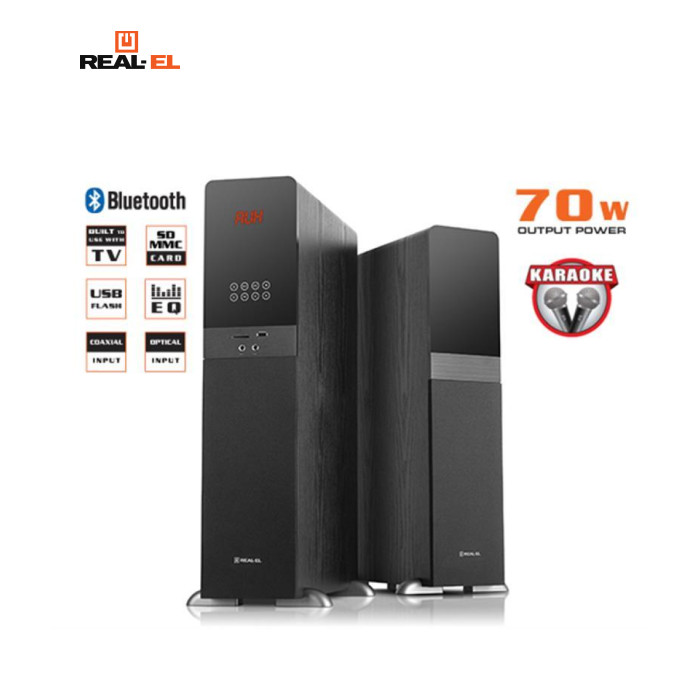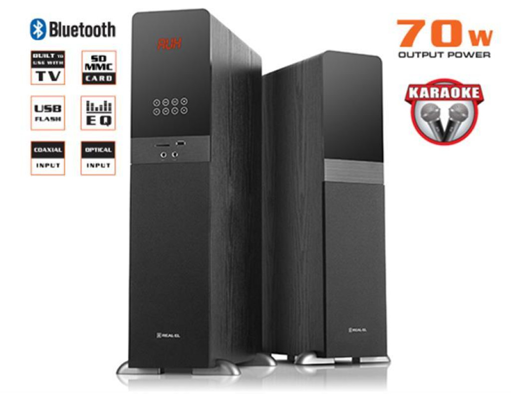 Помимо этого акустическая система может быть подключена практически к любым современным источникам аудио сигнала без использования дополнительного усилителя мощности, имеет встроенный проигрыватель USB, SD CARD (MMC) и практически никаких ограничений по типу подключения, в том числе через полюбившийся всем BLUETOOTH (версия EDR+5.0). Оптимизированный кроссовер предусмотрен для улучшения чистоты звучания, три активных динамика для воспроизведения полного спектра частот, коаксиальный и оптический вход. Если есть желание настроить звук по своему вкусу, можно воспользоваться встроенным эквалайзером. Любителей пения тоже не забыли, их порадуют целых два микрофонных входа для КАРАОКЕ. Дизайн REAL-EL S-2030 станет идеальной частью интерьера помещения, про удобство тоже не забыли – в комплекте предусмотрен полнофункциональный пульт дистанционного управления. |