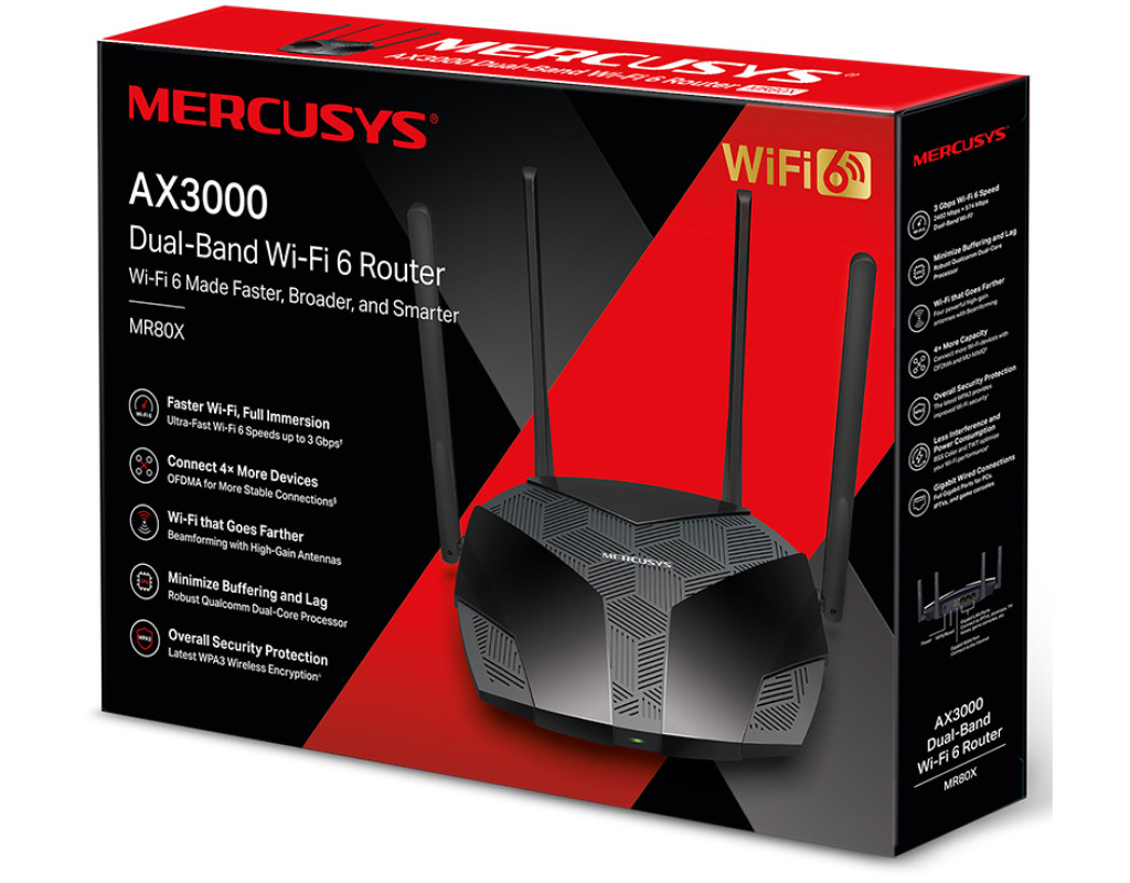 | Маршрутизатор Mercusys MR80X — это современное решение для обеспечения качественного и быстрого интернет-соединения в вашем доме или офисе. Благодаря поддержке Wi-Fi стандартов 802.11 n, b, ax, ac, a и g, это устройство гарантирует вам универсальность и высокую производительность. Скорость Wi-Fi до 2402 Мбит/с при работе на частоте 5 ГГц позволяет просматривать видео в 4K, играть в онлайн-игры и загружать большие файлы без задержек. Особенностью Mercusys MR80X являются технологии OFDMA и MU-MIMO, которые позволяют обмениваться данными с несколькими устройствами одновременно. Это оптимизирует работу сети и обеспечивает в четыре раза больше подключений без потери скорости. Несъемные четыре антенны с высоким коэффициентом усиления и поддержка технологии Beamforming обеспечивают стабильный и дальний сигнал, охватывая всю территорию вашего дома или офиса. Входной интерфейс 10/100/1000BASE-T Ethernet и три гигабитных LAN порта позволяют надежно подключить несколько устройств для максимальной скорости передачи данных до 1 Гбит/с. VPN поддержка гарантирует безопасное соединение, а новейший стандарт шифрования WPA3 обеспечивает высокий уровень защиты вашей сети. Технология Target Wake Time (TWT) позволяет экономить энергию, снижая потребление мобильными и IoT-устройствами во время передачи данных. Кроме того, функция BSS color минимизирует помехи от других сигналов Wi-Fi, улучшая качество подключения. Благодаря режиму точки доступа, Mercusys MR80X легко превращает вашу проводную сеть в беспроводную зону покрытия. Smart Connect умно подбирает наиболее подходящий диапазон для каждого устройства, обеспечивая непрерывное и оптимальное соединение. Выбирая Mercusys MR80X, вы получаете надежный и многофункциональный маршрутизатор с передовыми технологиями, которые превращают ваше подключение к интернету в действительно приятный и качественный опыт, обеспечивая высокую скорость и защиту во всех уголках вашего пространства. |