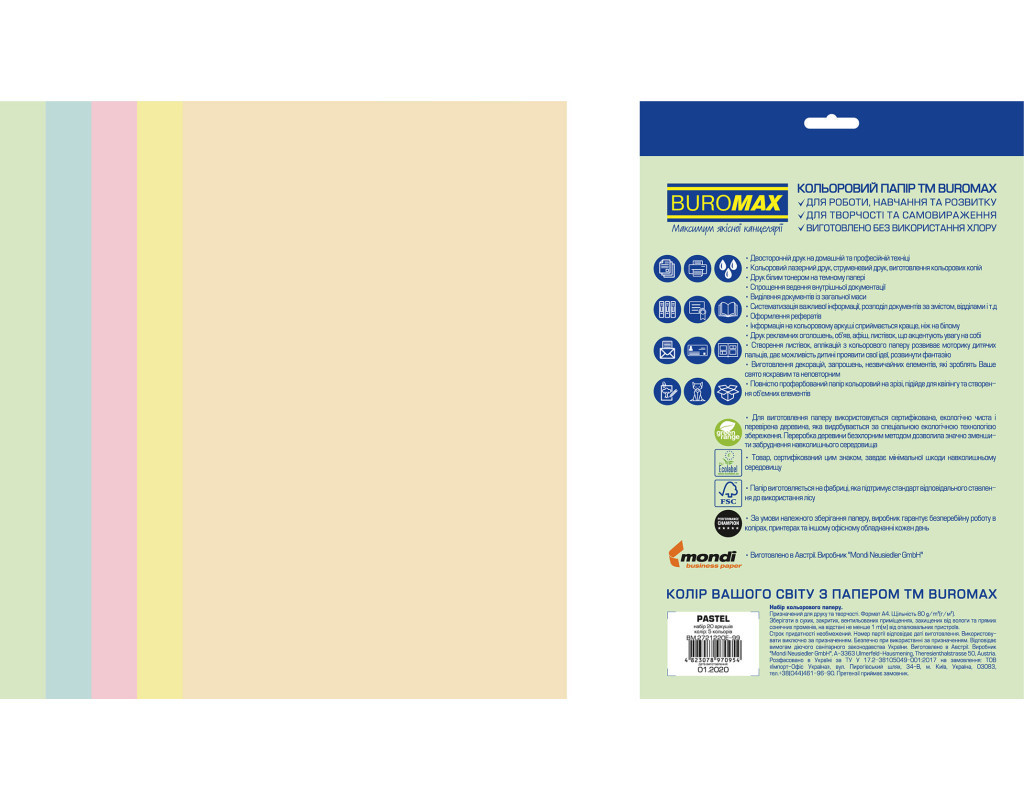Бумага Buromax А4, 80g, PASTEL, 5colors, 20sh EUROMAX (BM.2721220E-99)