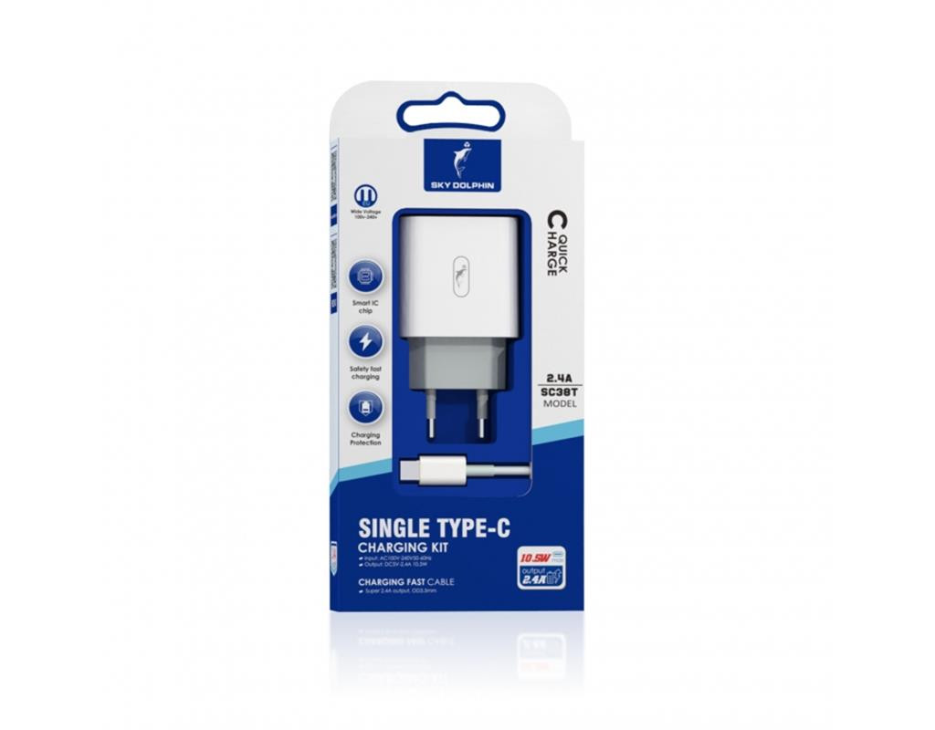| Сетевое зарядное устройство SkyDolphin SC38T (USB TYPE-Cx2.4A) White (MZP-000183) + кабель USB Type-C |